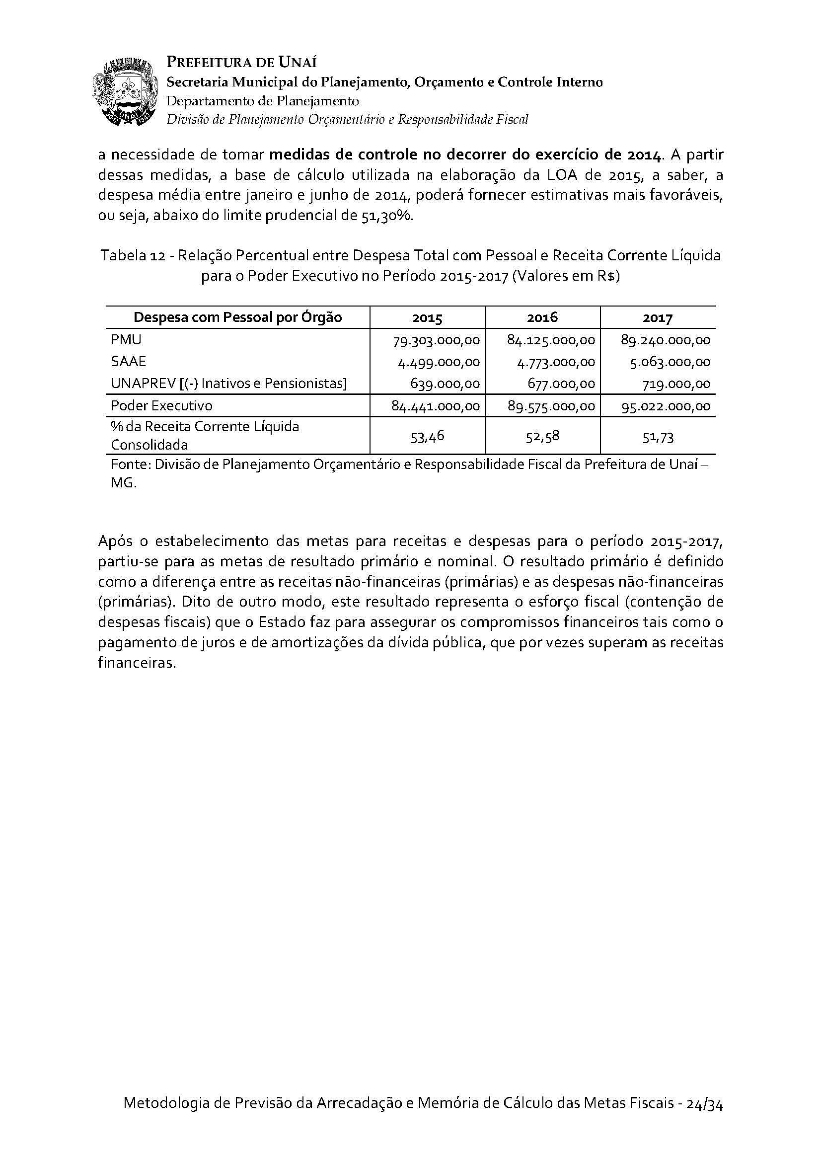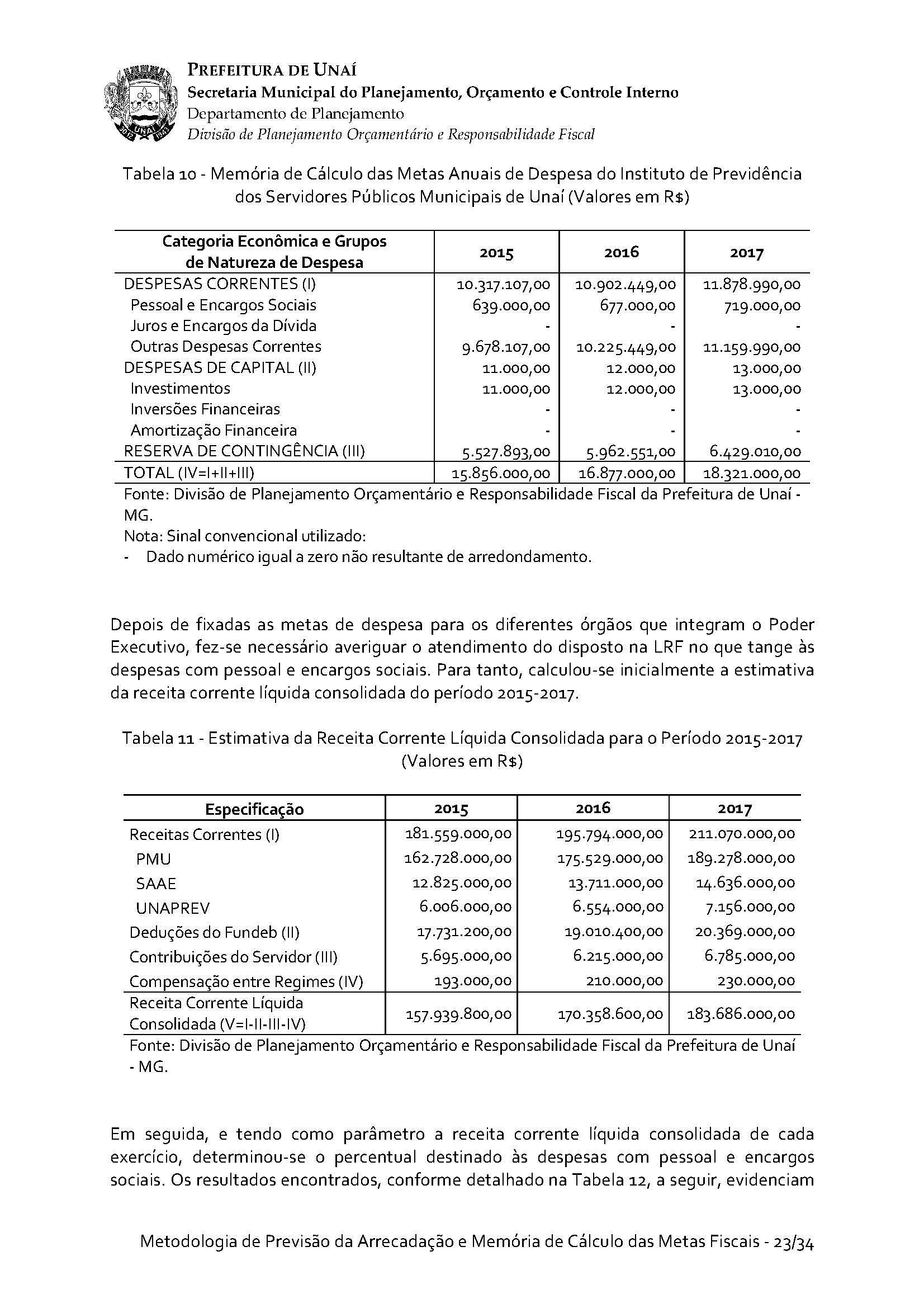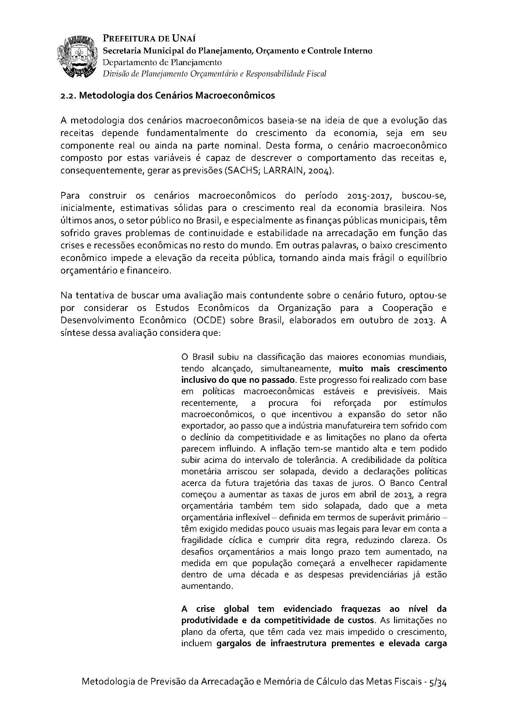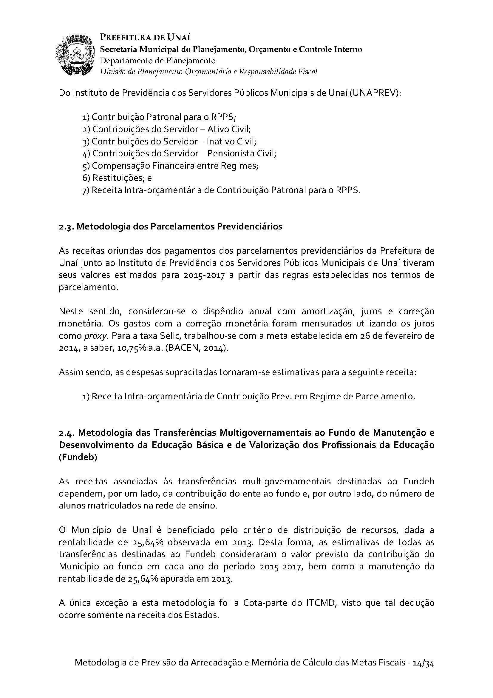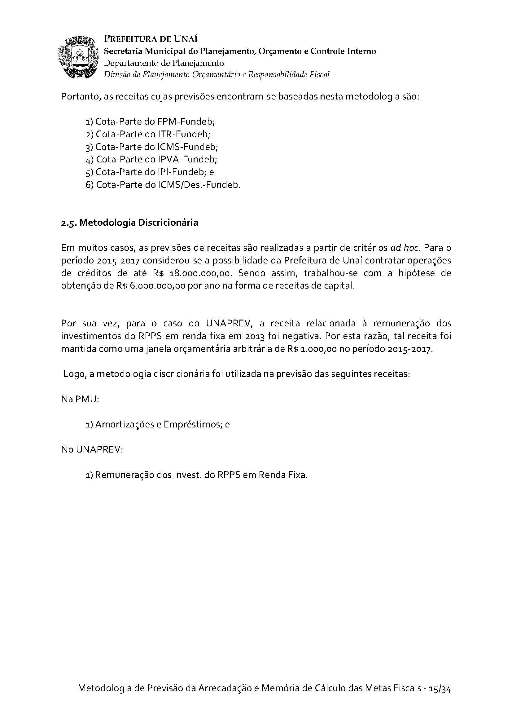 Os órgãos da administração indireta do Poder Executivo e o Poder Legislativo, se for o caso, encaminharão à Divisão de Planejamento Orçamentário e Responsabilidade Fiscal da Secretaria Municipal do Planejamento, Orçamento e Controle Interno da Prefeitura de Unaí, até 15 (quinze) dias antes do prazo definido no caput deste artigo, os estudos e estimativas das suas receitas orçamentárias para o exercício subsequente e as respectivas memórias de cálculo, para fins de consolidação da receita municipal.