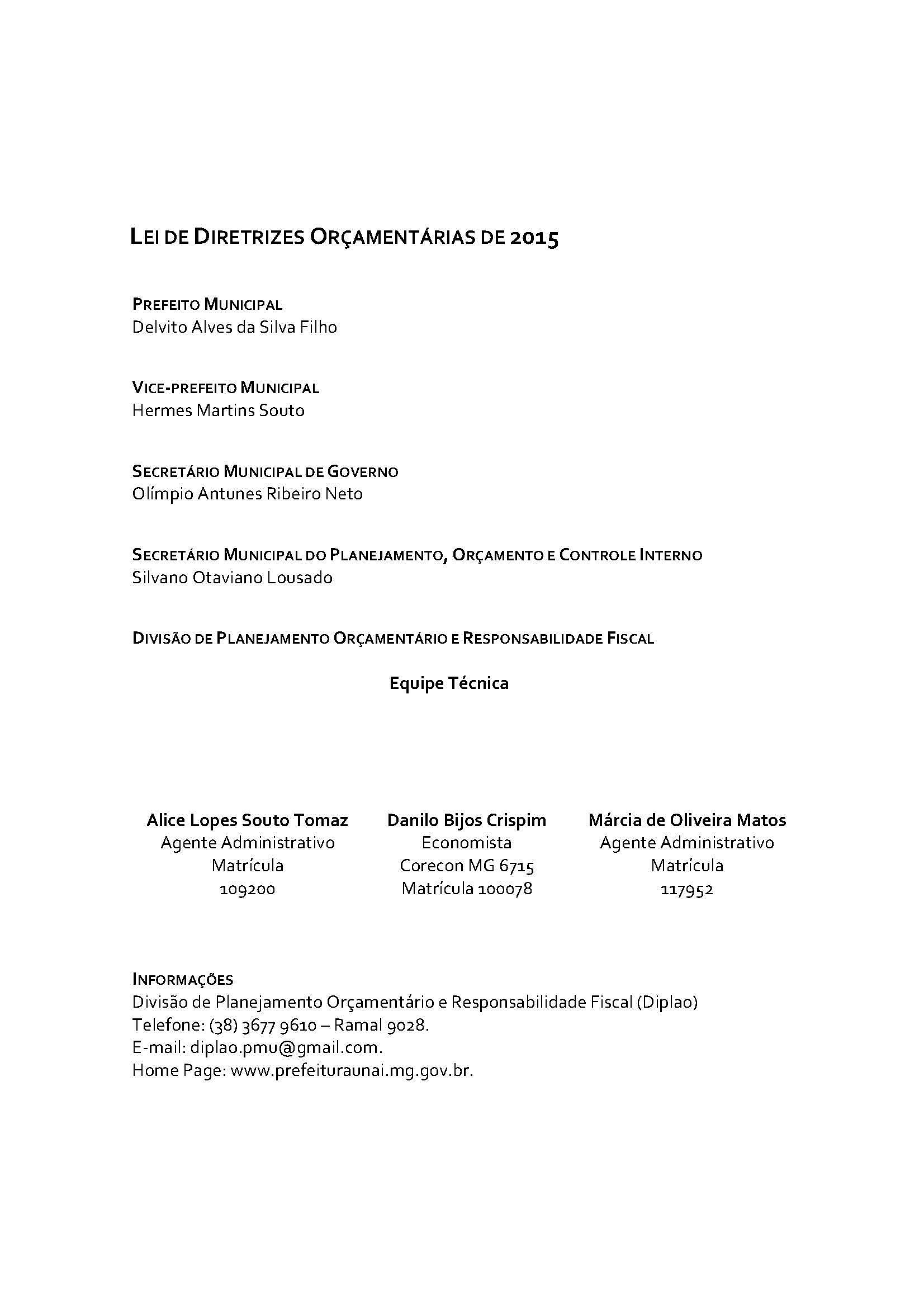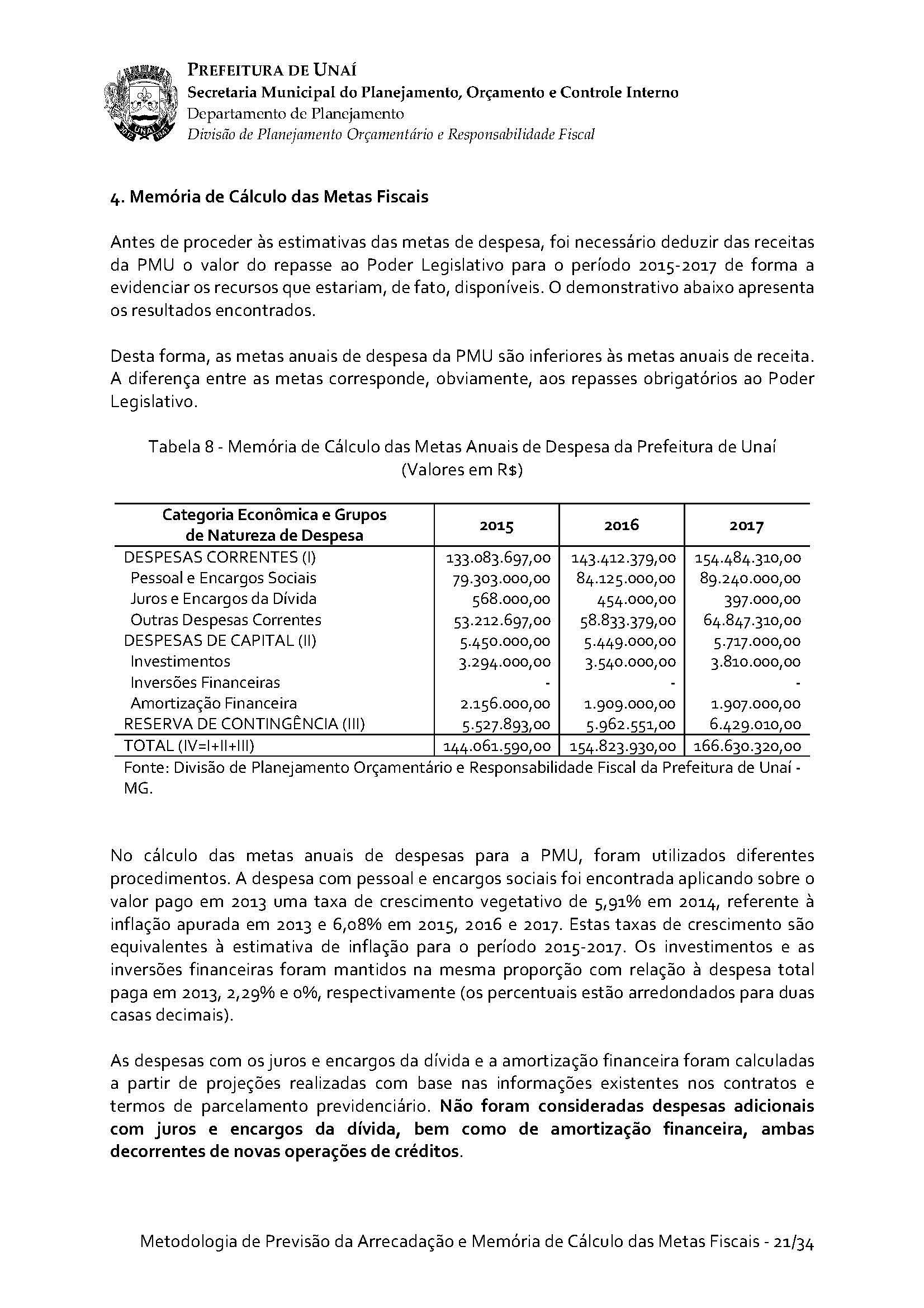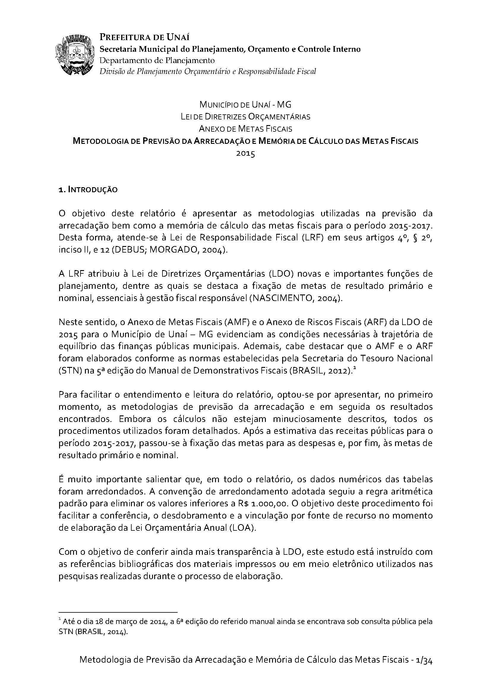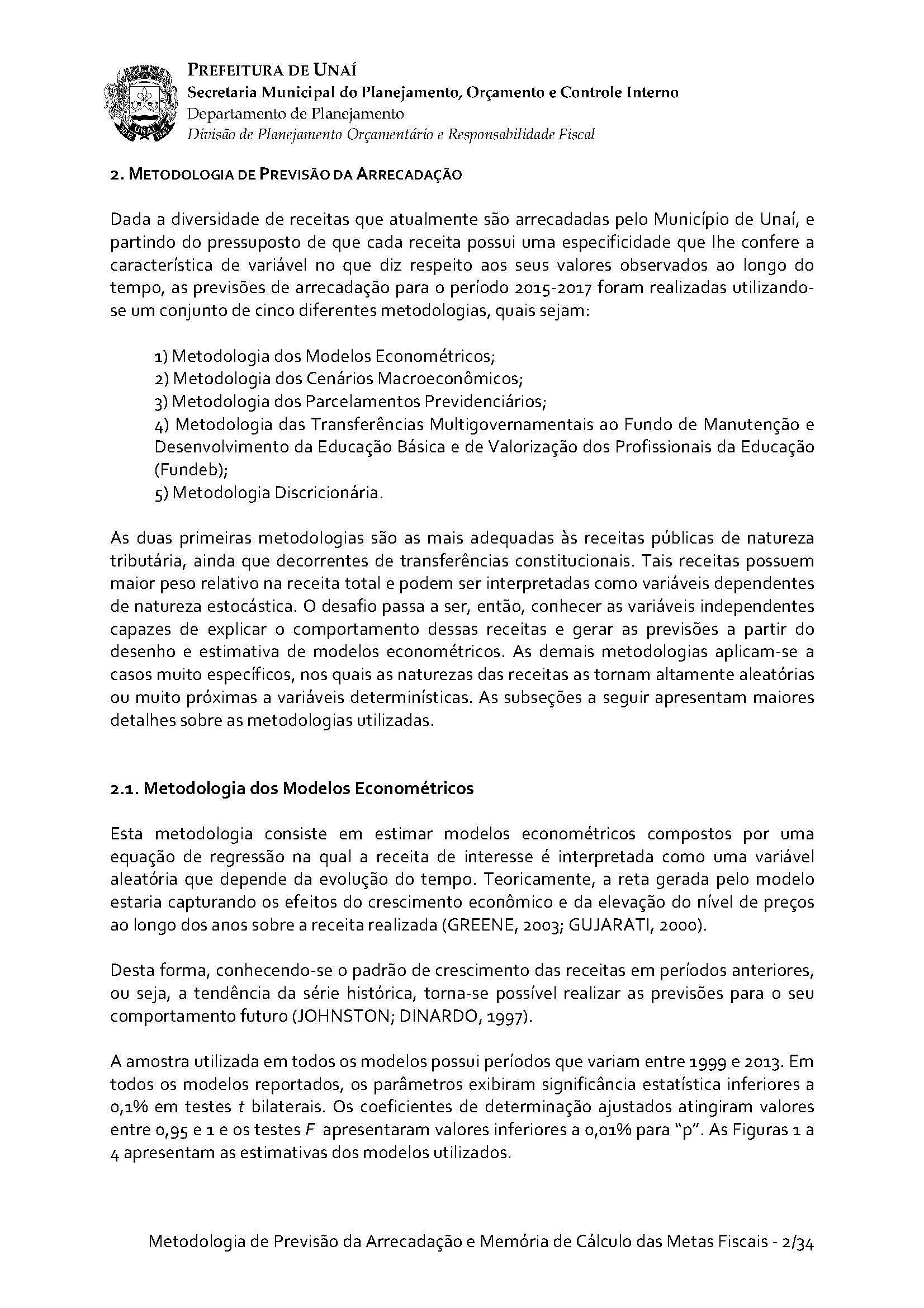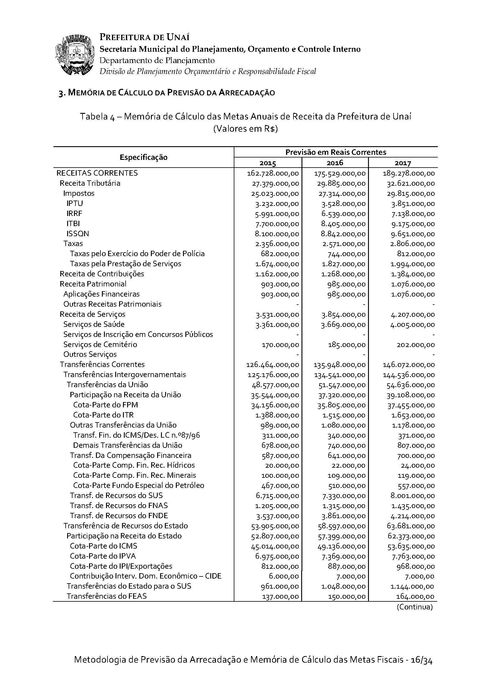 Os órgãos da administração indireta do Poder Executivo e o Poder Legislativo, se for o caso, encaminharão à Divisão de Planejamento Orçamentário e Responsabilidade Fiscal da Secretaria Municipal do Planejamento, Orçamento e Controle Interno da Prefeitura de Unaí, até 15 (quinze) dias antes do prazo definido no caput deste artigo, os estudos e estimativas das suas receitas orçamentárias para o exercício subsequente e as respectivas memórias de cálculo, para fins de consolidação da receita municipal.