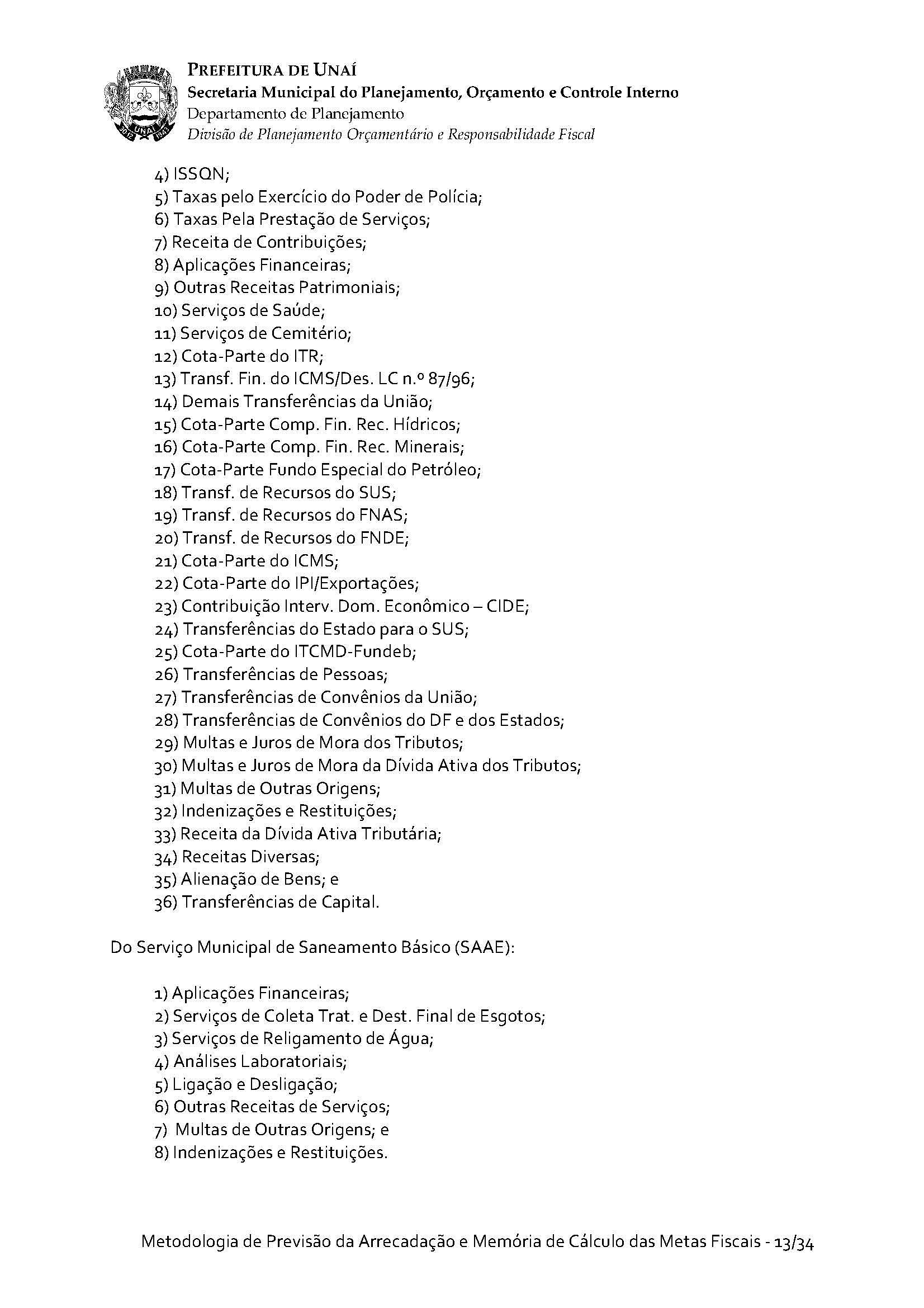 as metas bimestrais de arrecadação de receitas, de forma a atender ao disposto no artigo 13 da Lei Complementar Federal n.º 101, de 2000;