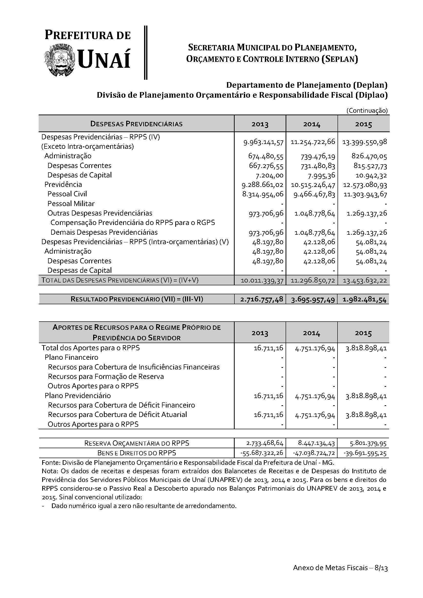 Anexo de Metas Fiscais; e