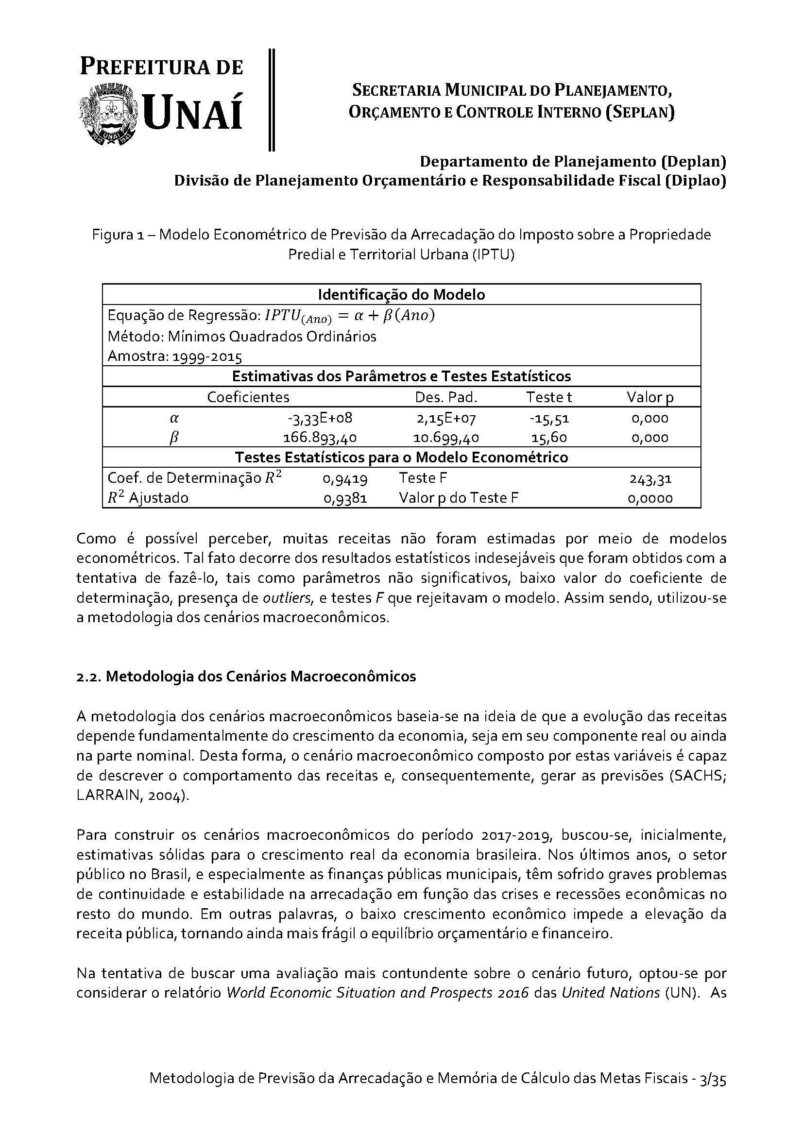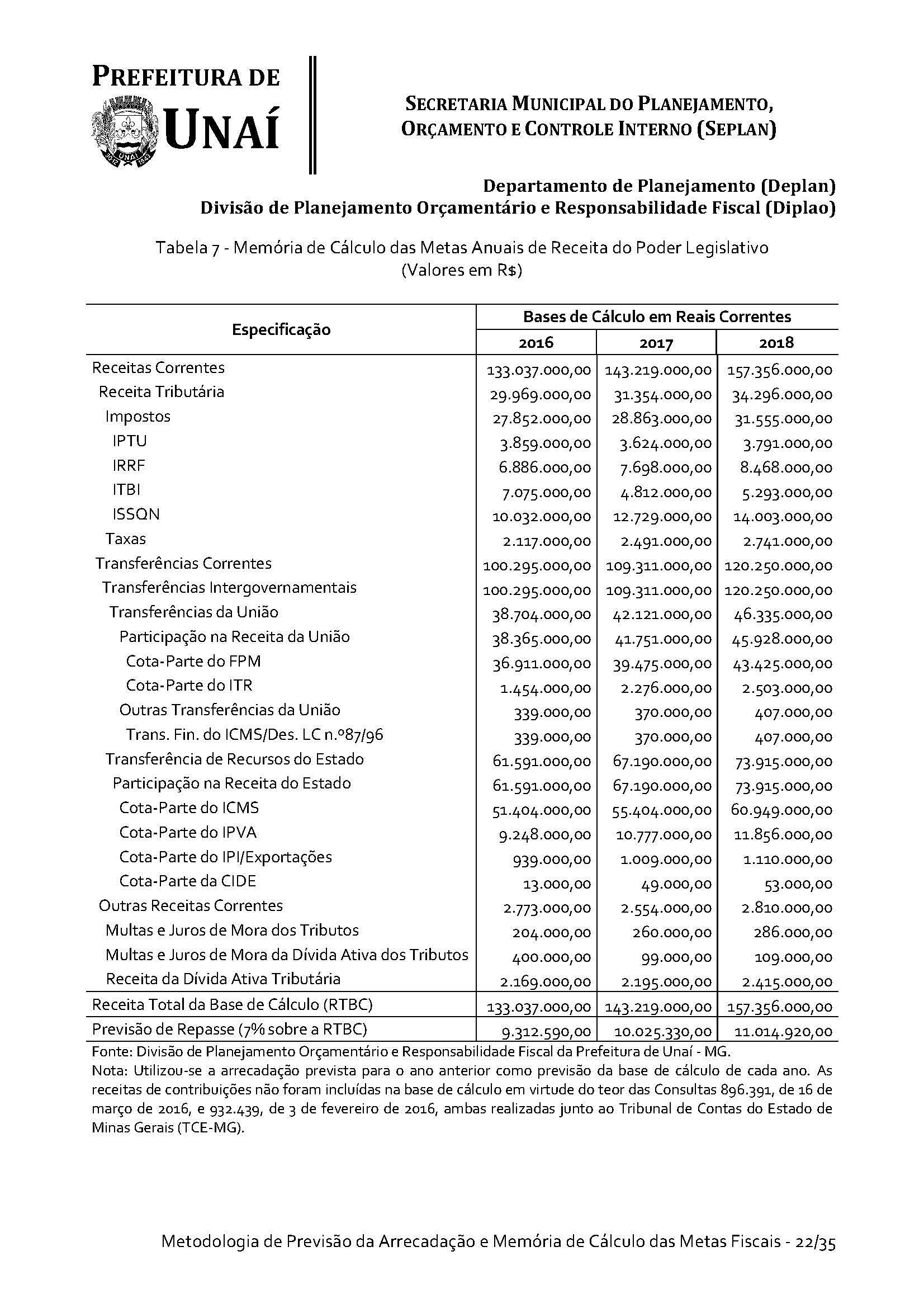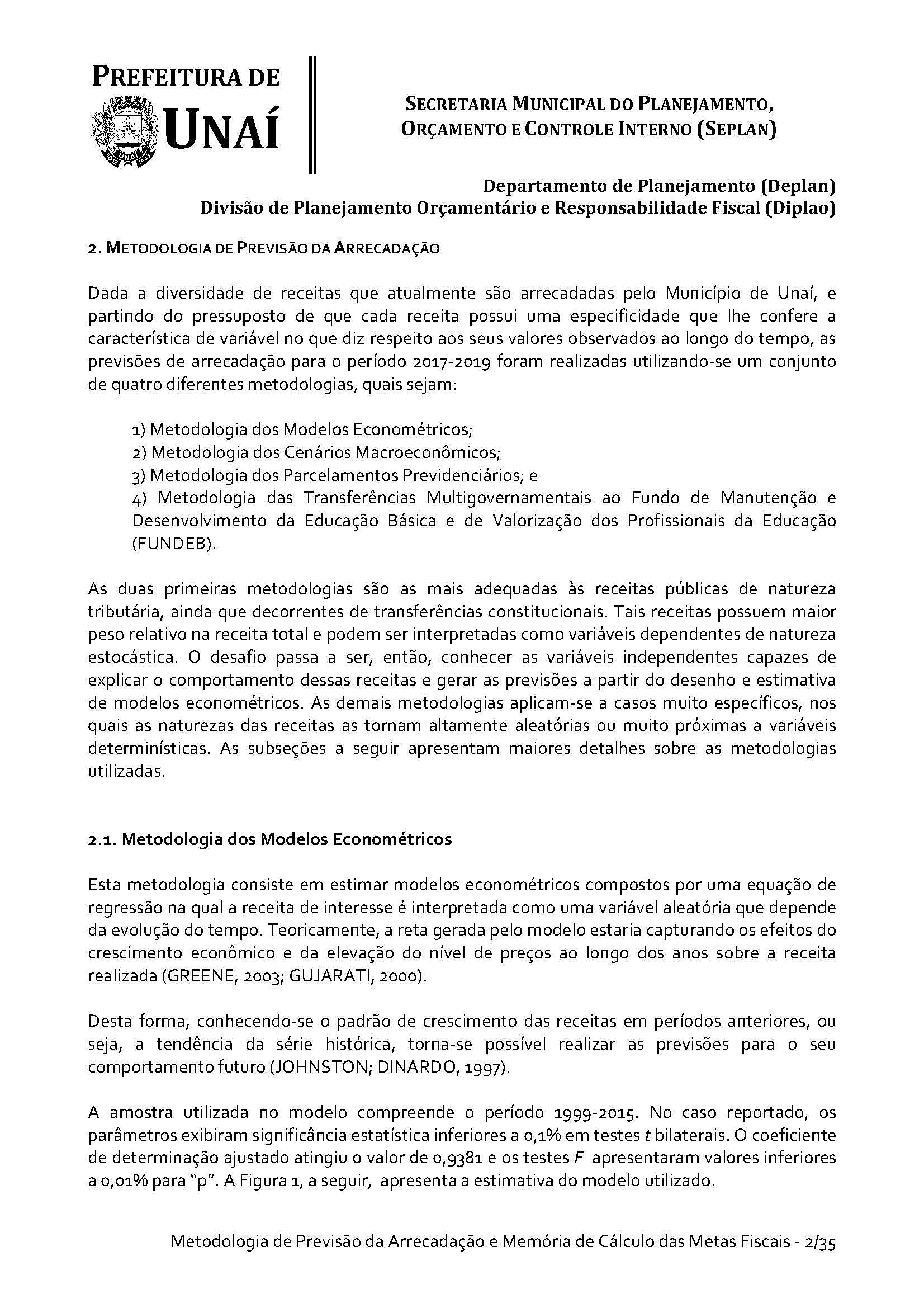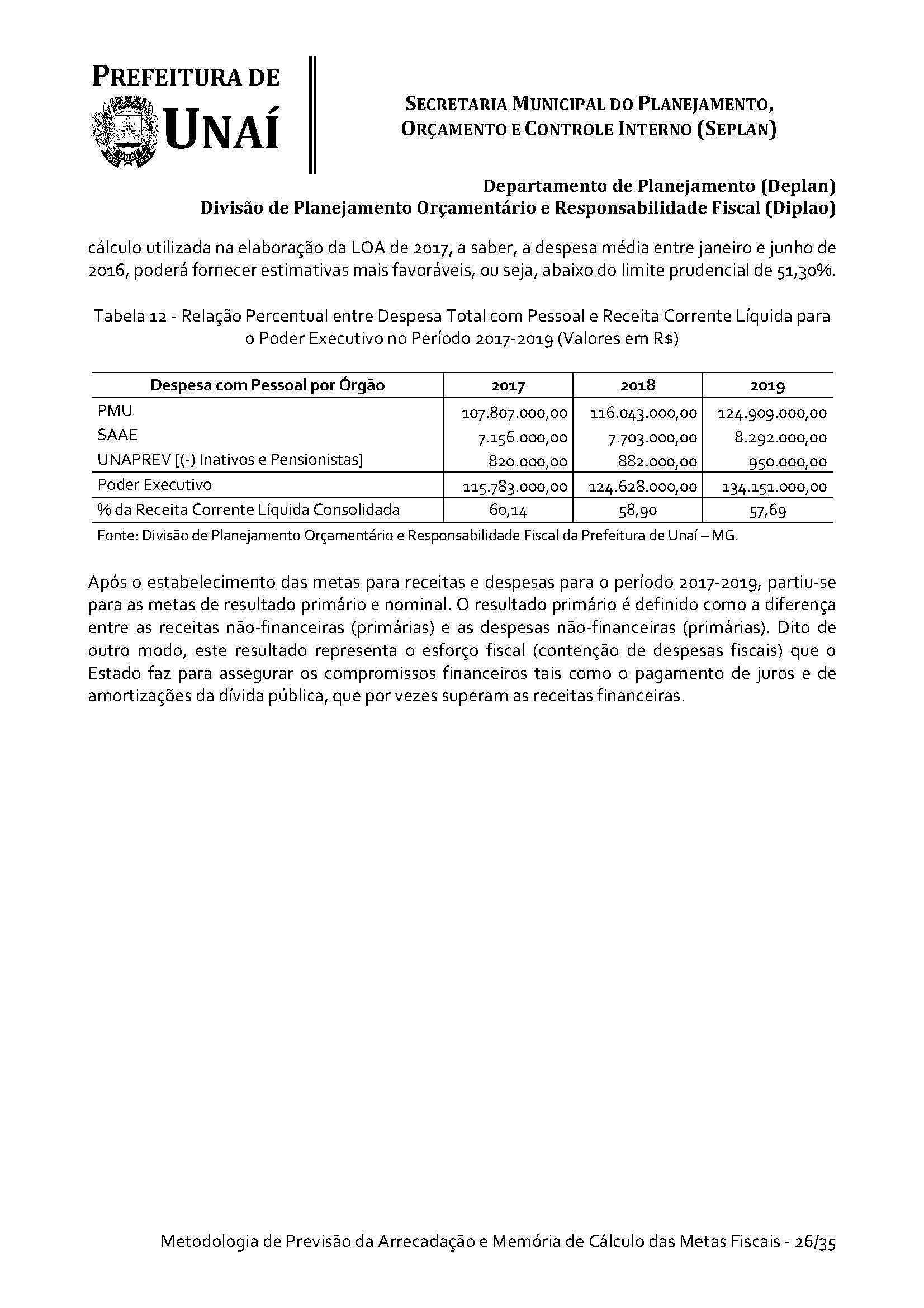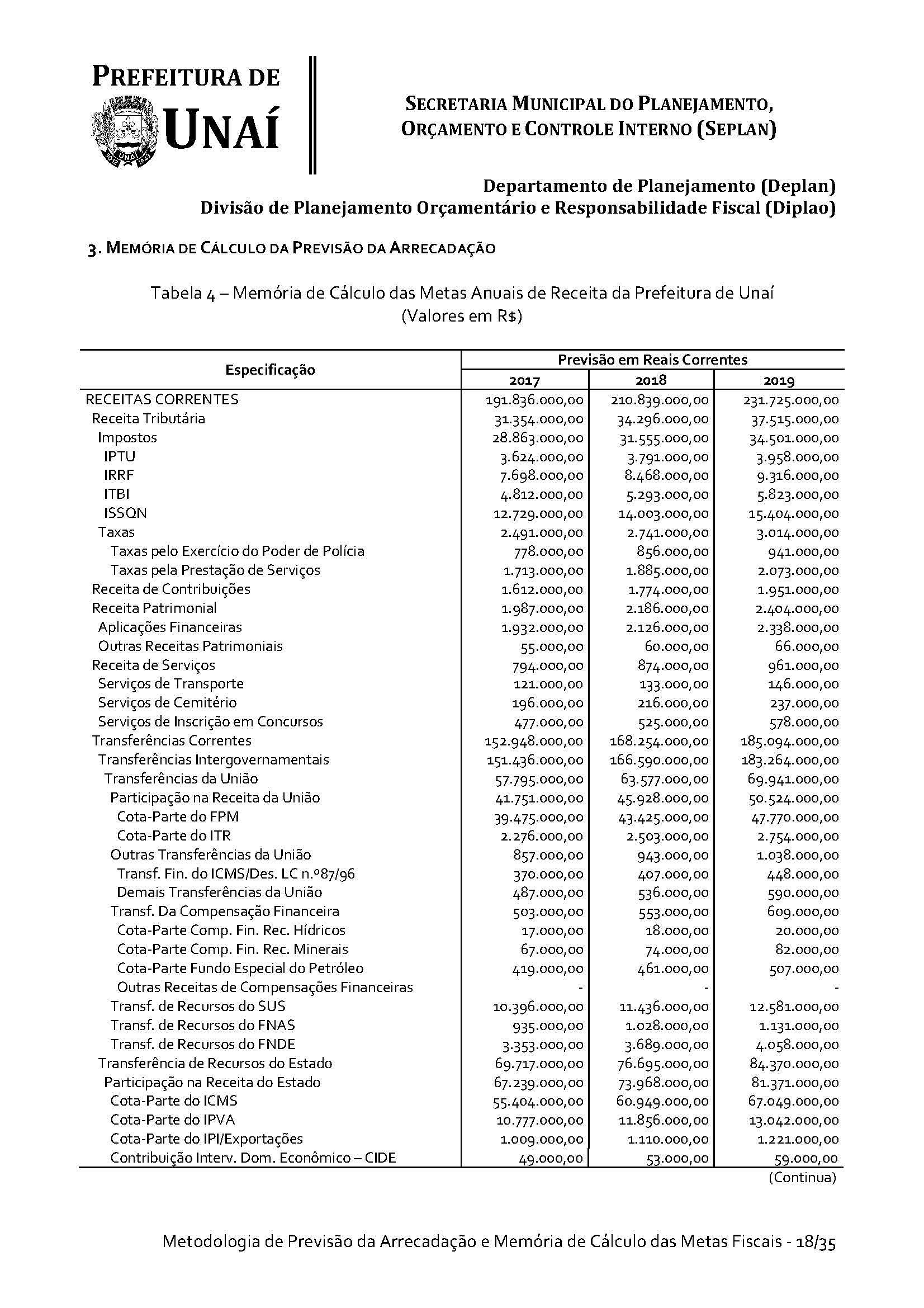 Os órgãos da Administração Indireta do Poder Executivo e o Poder Legislativo, se for o caso, encaminharão à Divisão de Planejamento Orçamentário e Responsabilidade Fiscal da Secretaria Municipal do Planejamento, Orçamento e Controle Interno da Prefeitura de Unaí, até 15 (quinze) dias antes do prazo definido no caput deste artigo, os estudos e estimativas das suas receitas orçamentárias para o exercício subsequente e as respectivas memórias de cálculo, para fins de consolidação da receita municipal.