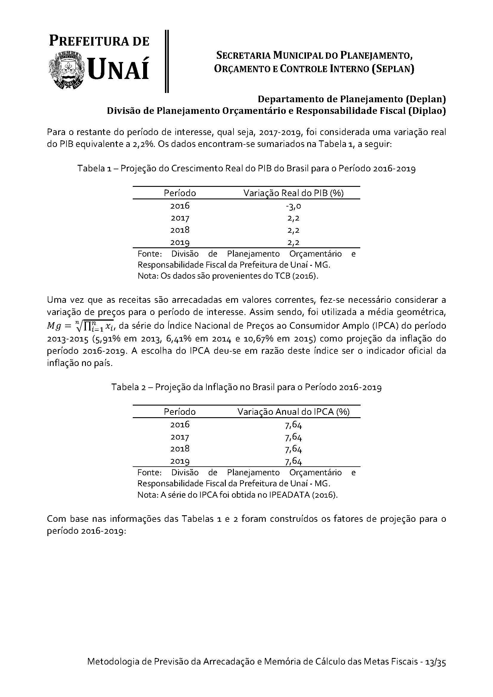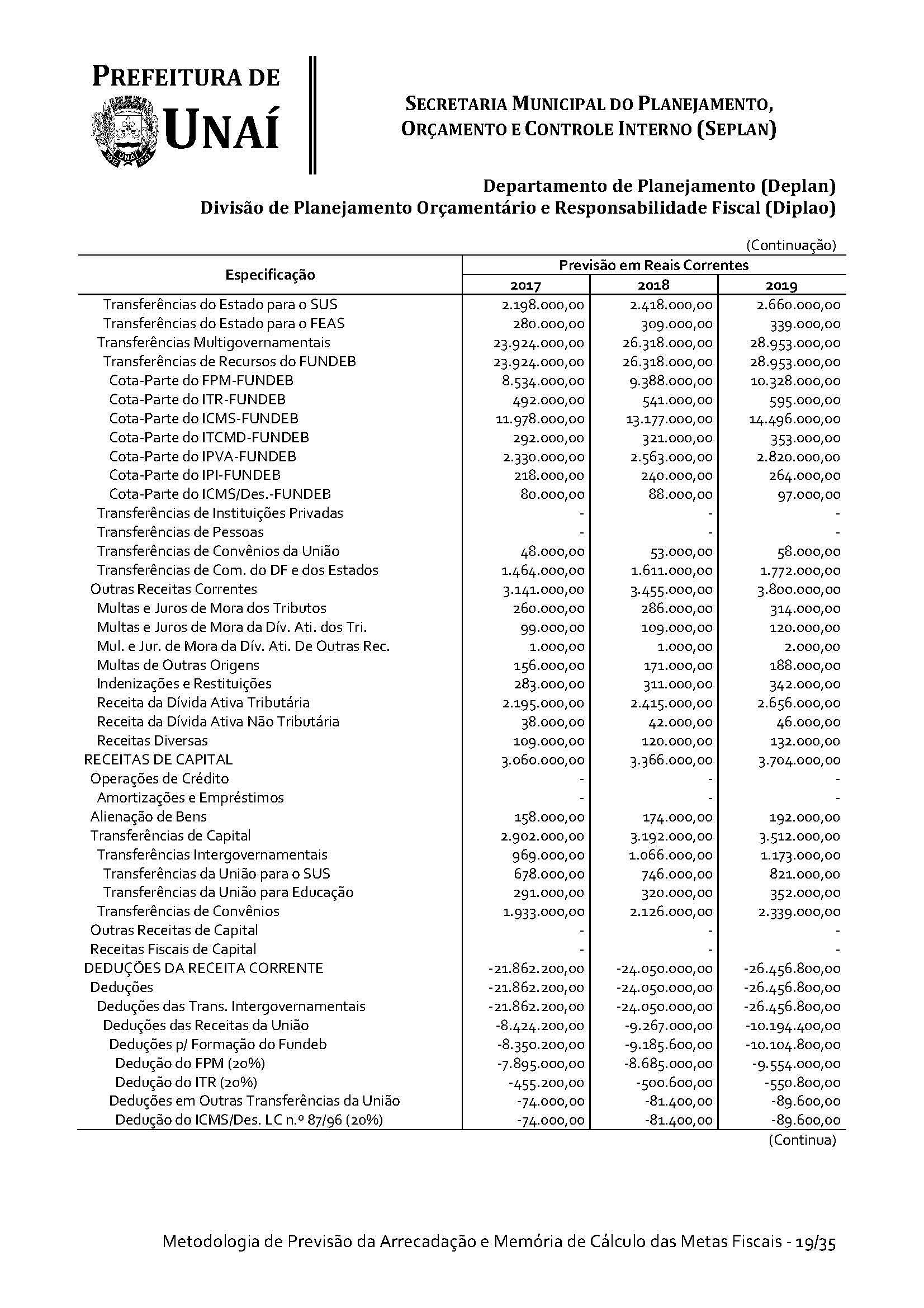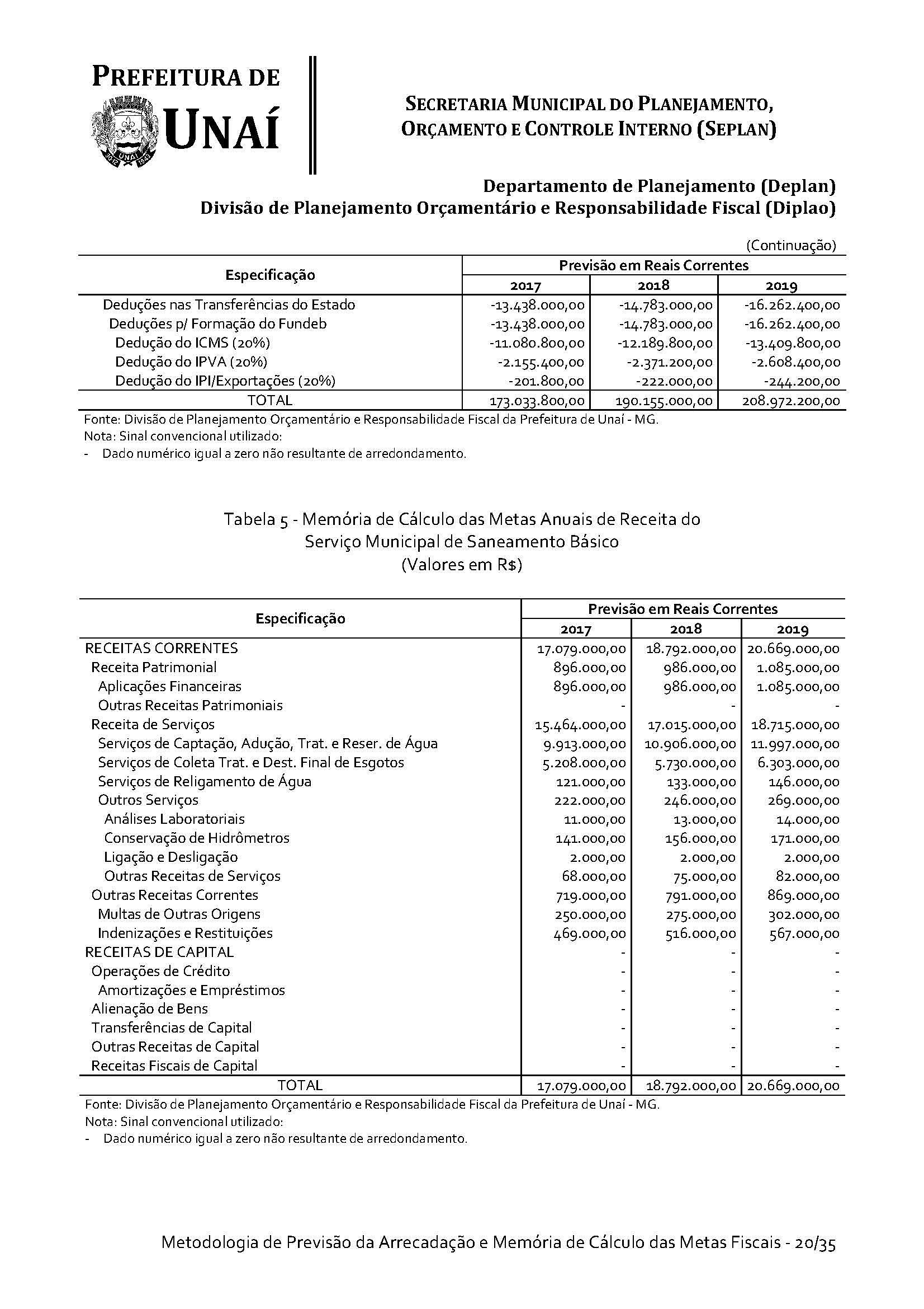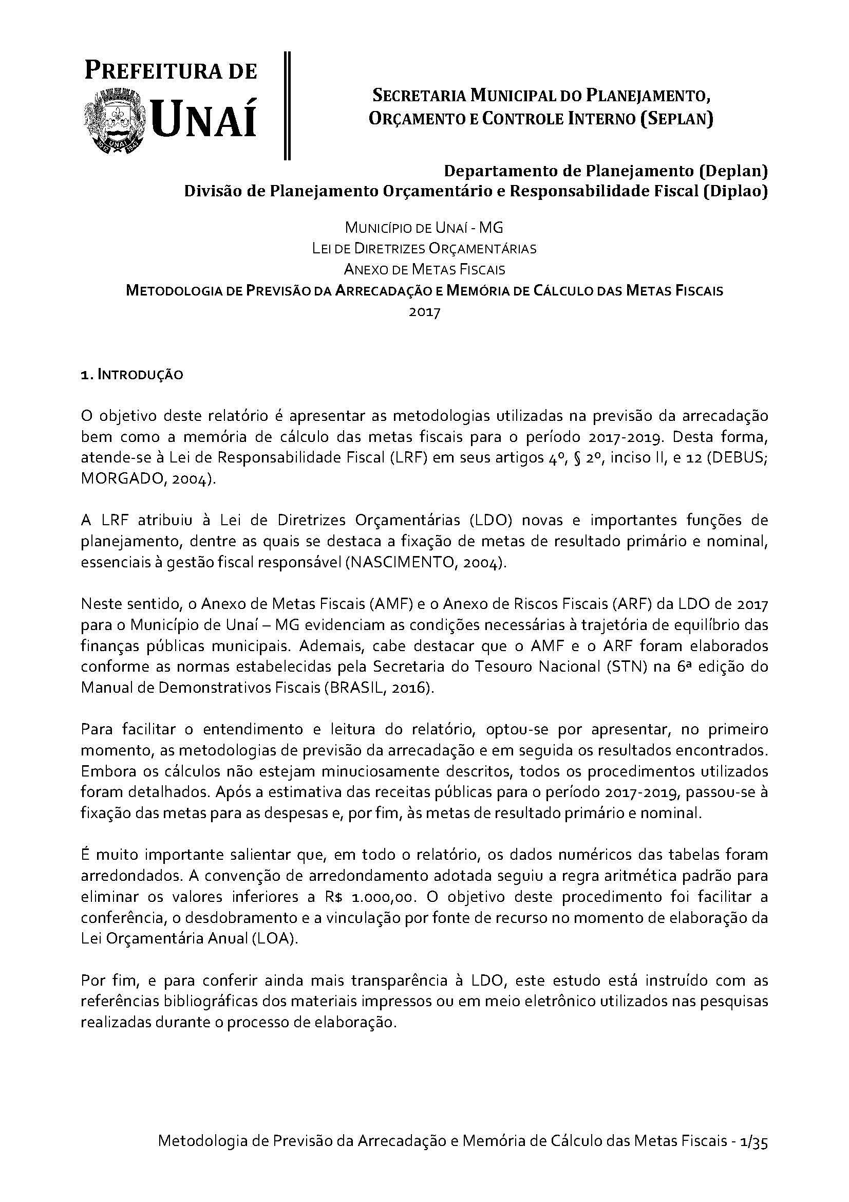 Os órgãos da Administração Indireta do Poder Executivo e o Poder Legislativo, se for o caso, encaminharão à Divisão de Planejamento Orçamentário e Responsabilidade Fiscal da Secretaria Municipal do Planejamento, Orçamento e Controle Interno da Prefeitura de Unaí, até 15 (quinze) dias antes do prazo definido no caput deste artigo, os estudos e estimativas das suas receitas orçamentárias para o exercício subsequente e as respectivas memórias de cálculo, para fins de consolidação da receita municipal.