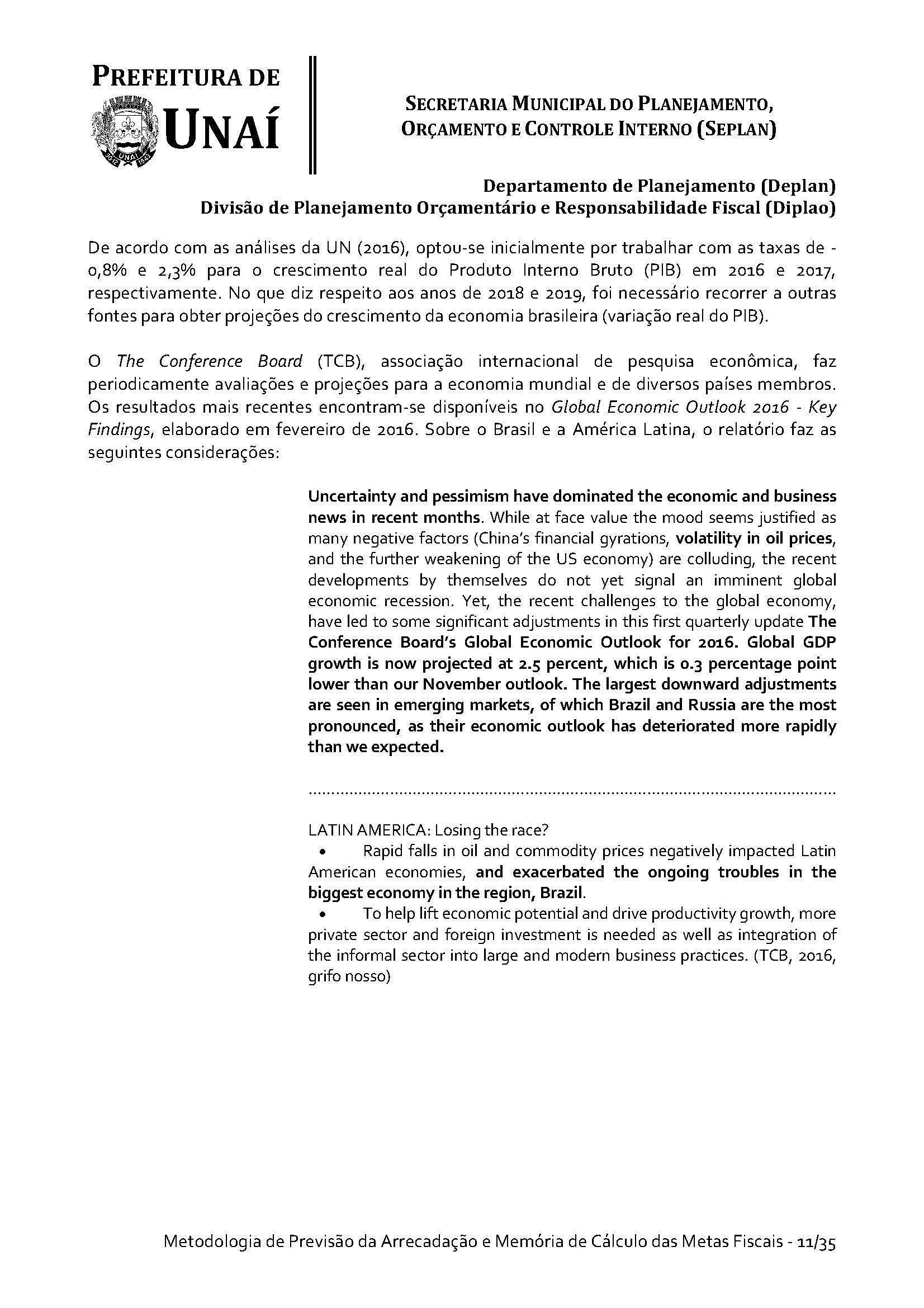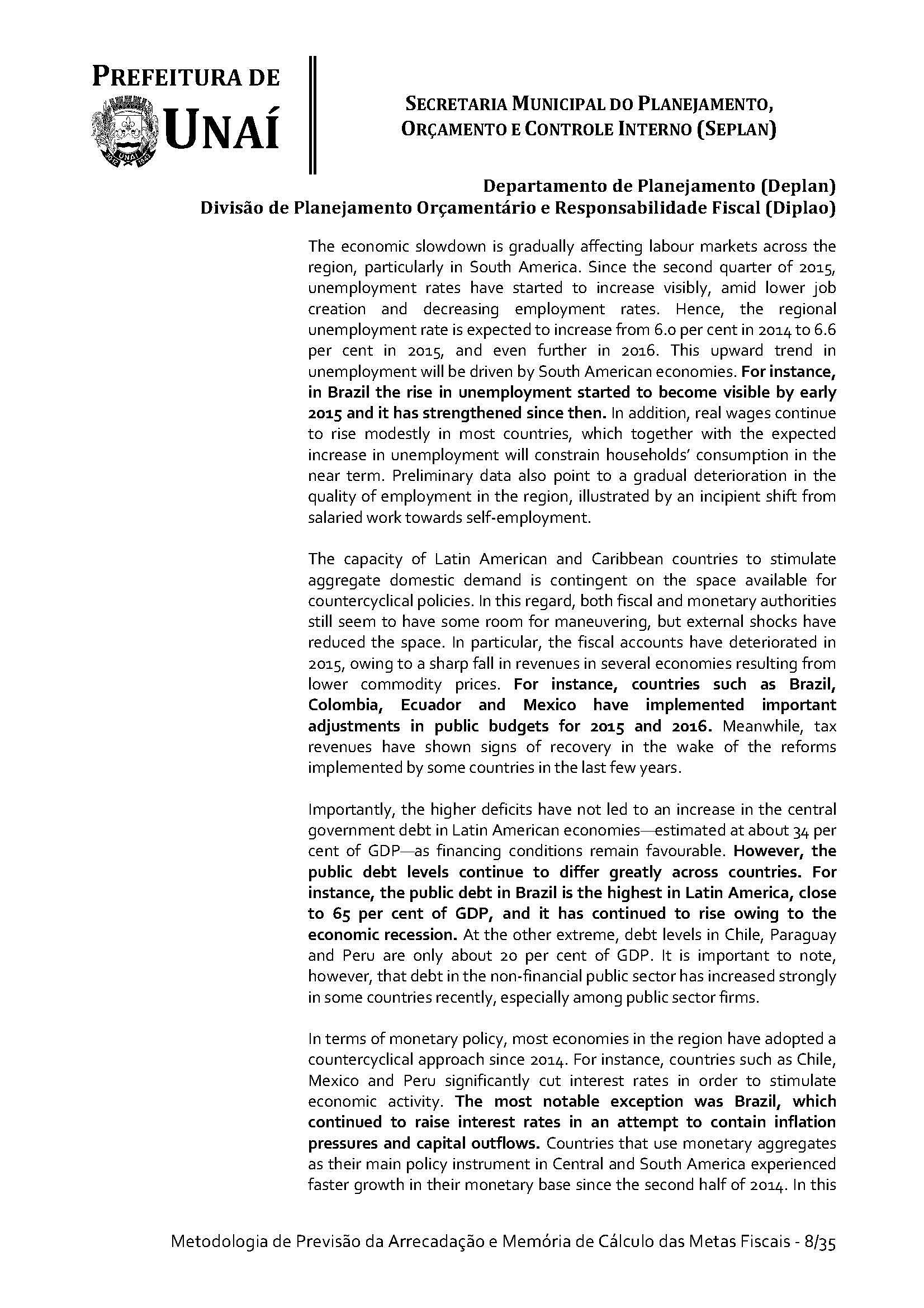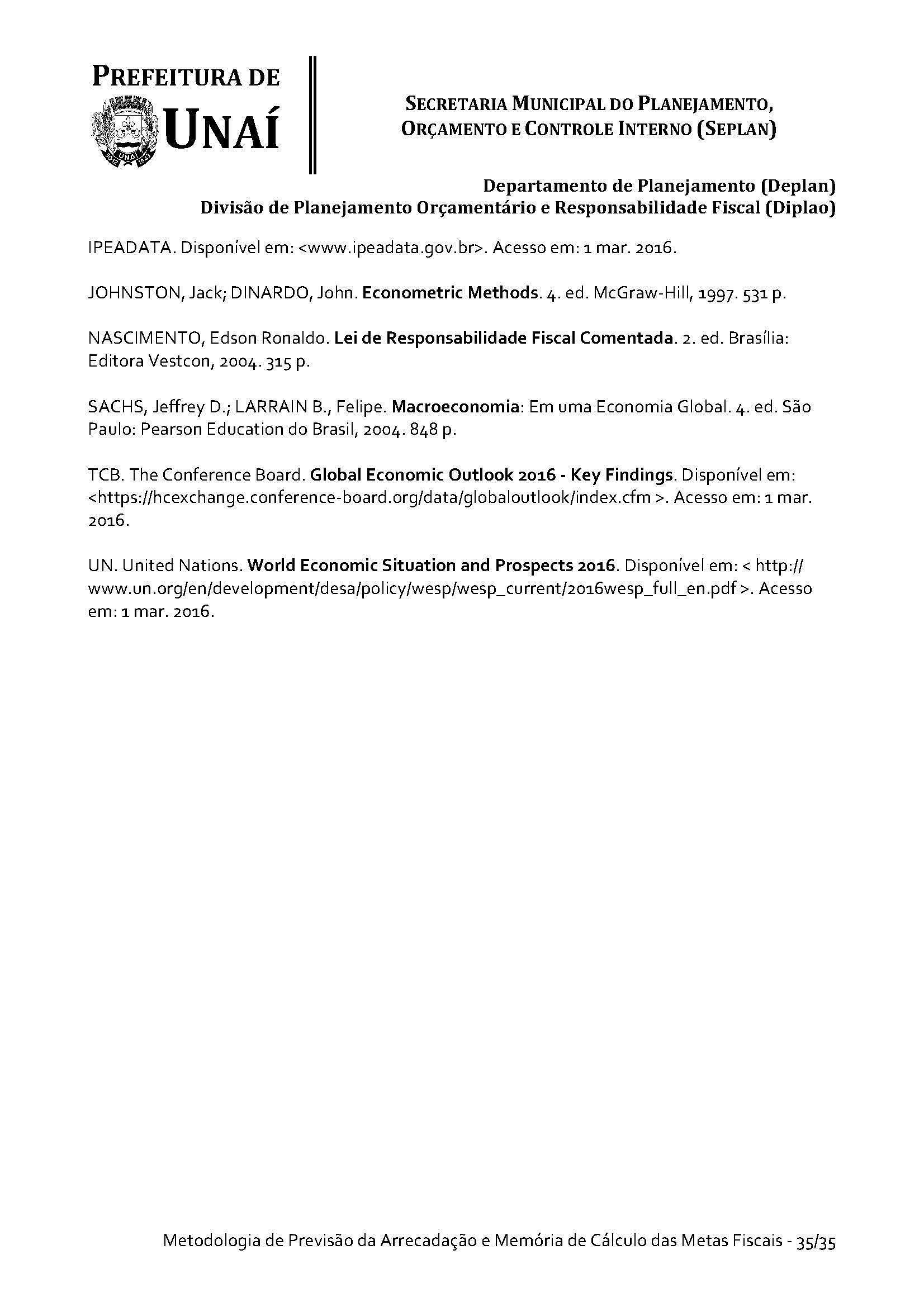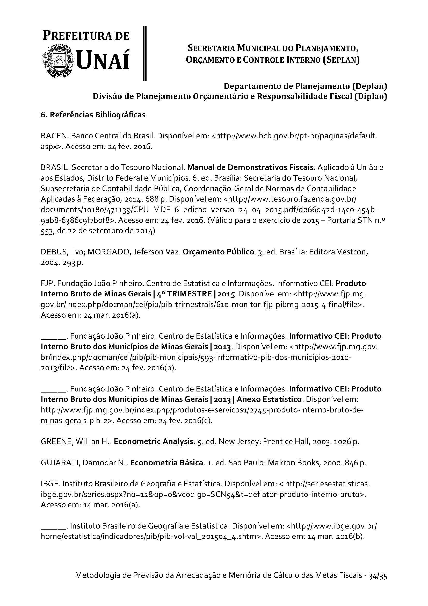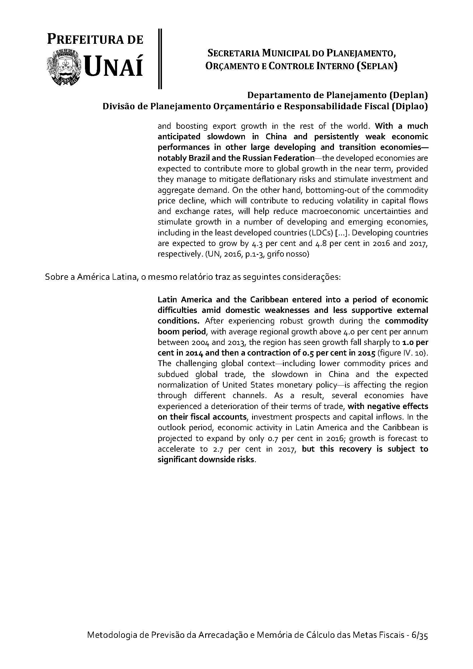 Os órgãos da Administração Indireta do Poder Executivo e o Poder Legislativo, se for o caso, encaminharão à Divisão de Planejamento Orçamentário e Responsabilidade Fiscal da Secretaria Municipal do Planejamento, Orçamento e Controle Interno da Prefeitura de Unaí, até 15 (quinze) dias antes do prazo definido no caput deste artigo, os estudos e estimativas das suas receitas orçamentárias para o exercício subsequente e as respectivas memórias de cálculo, para fins de consolidação da receita municipal.