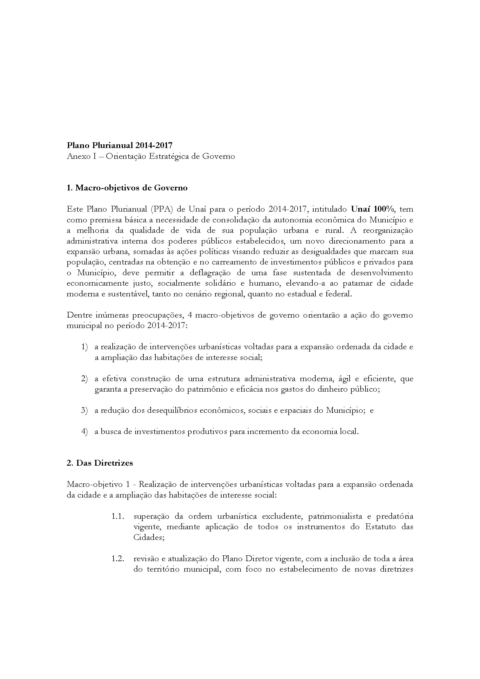 demonstração da compatibilidade com os macro-objetivos e diretrizes definidos no Plano Plurianual; e
