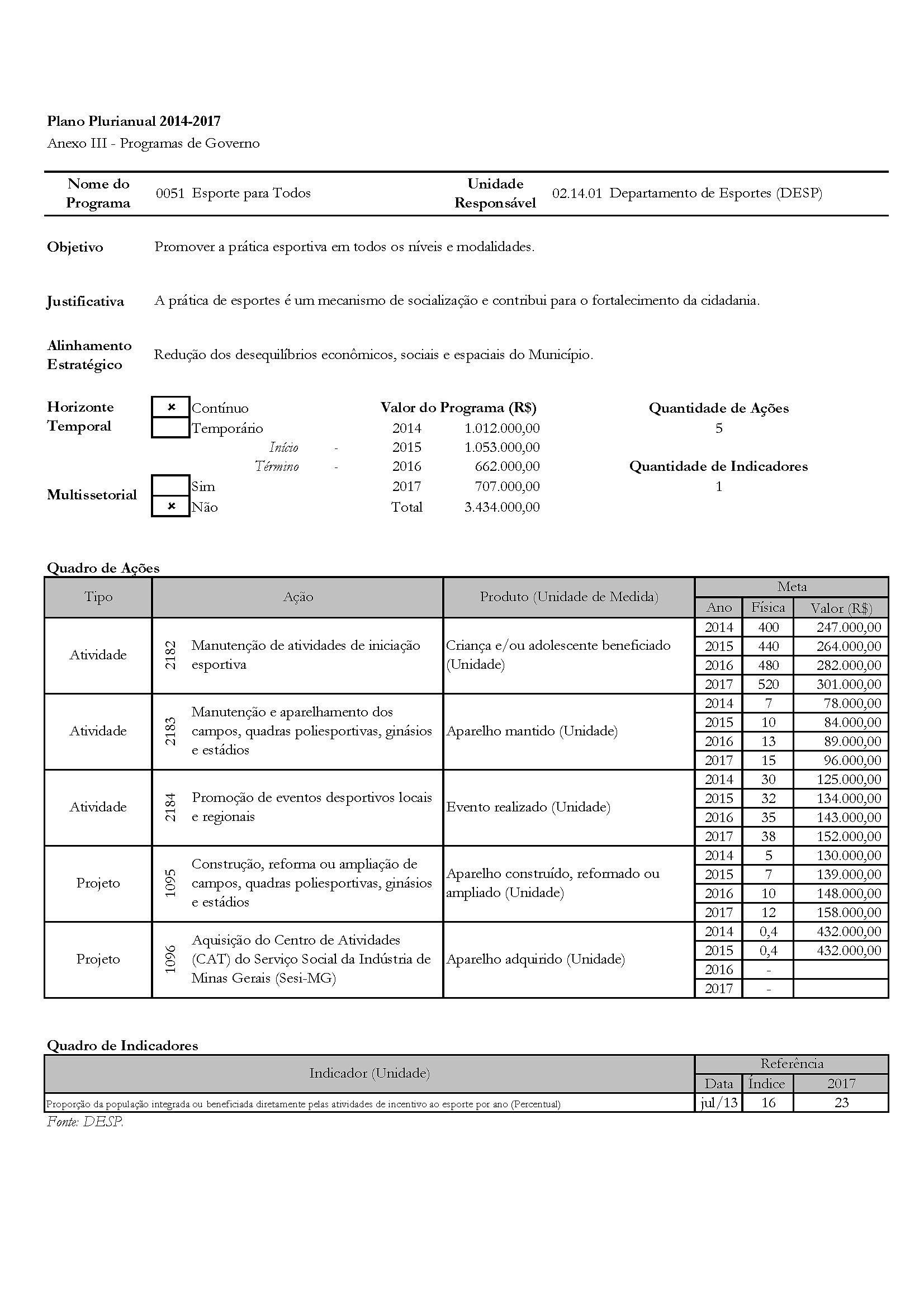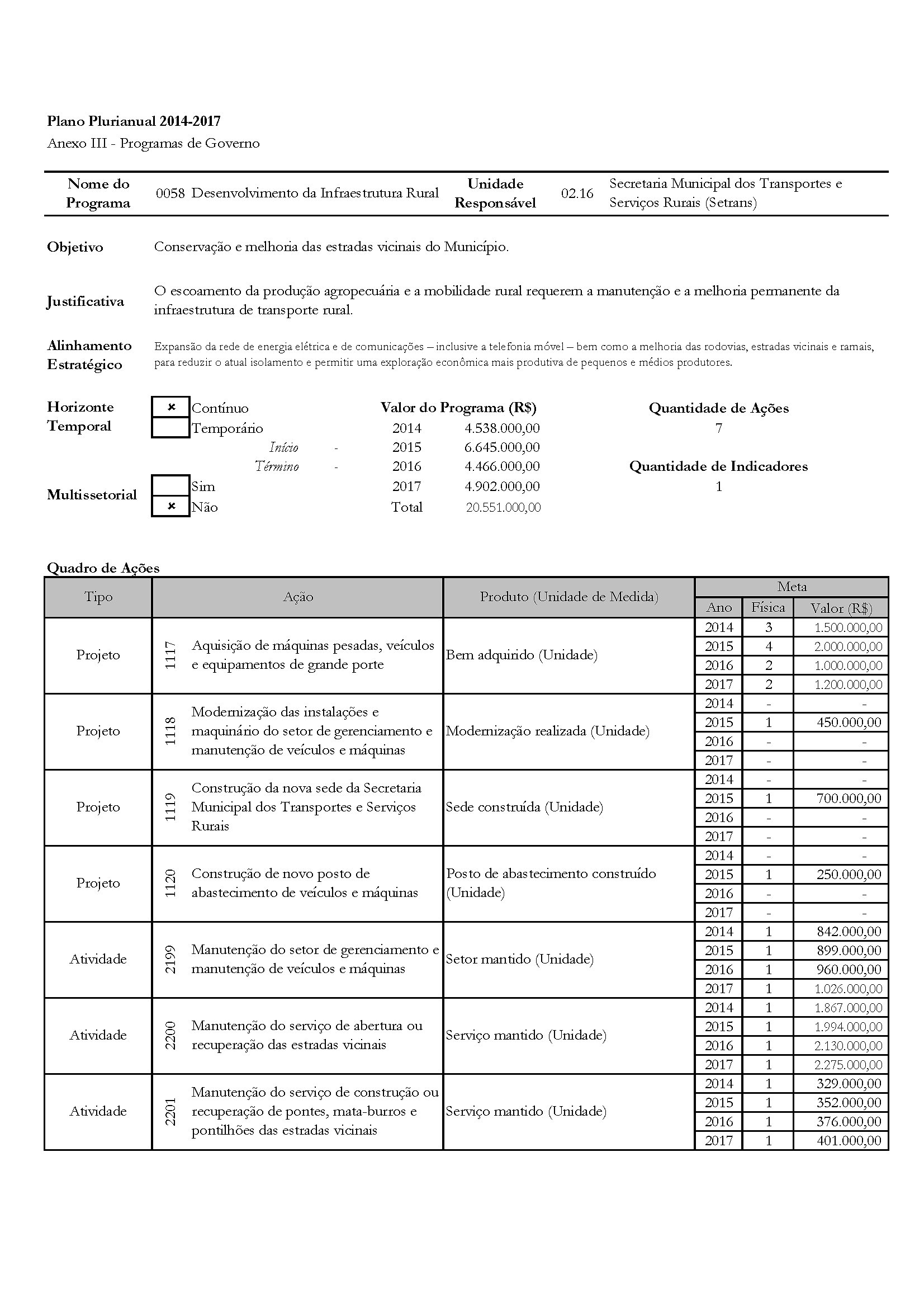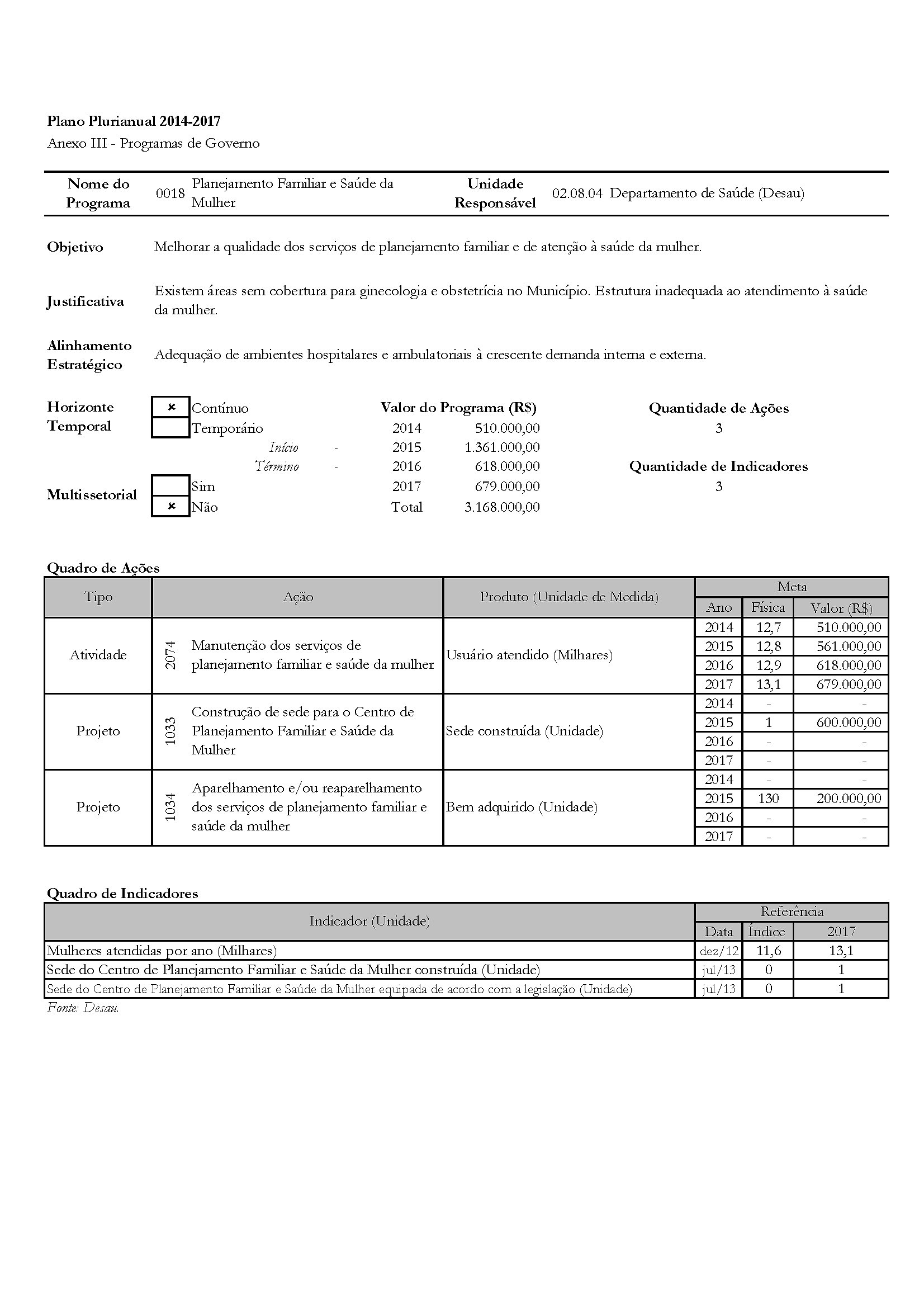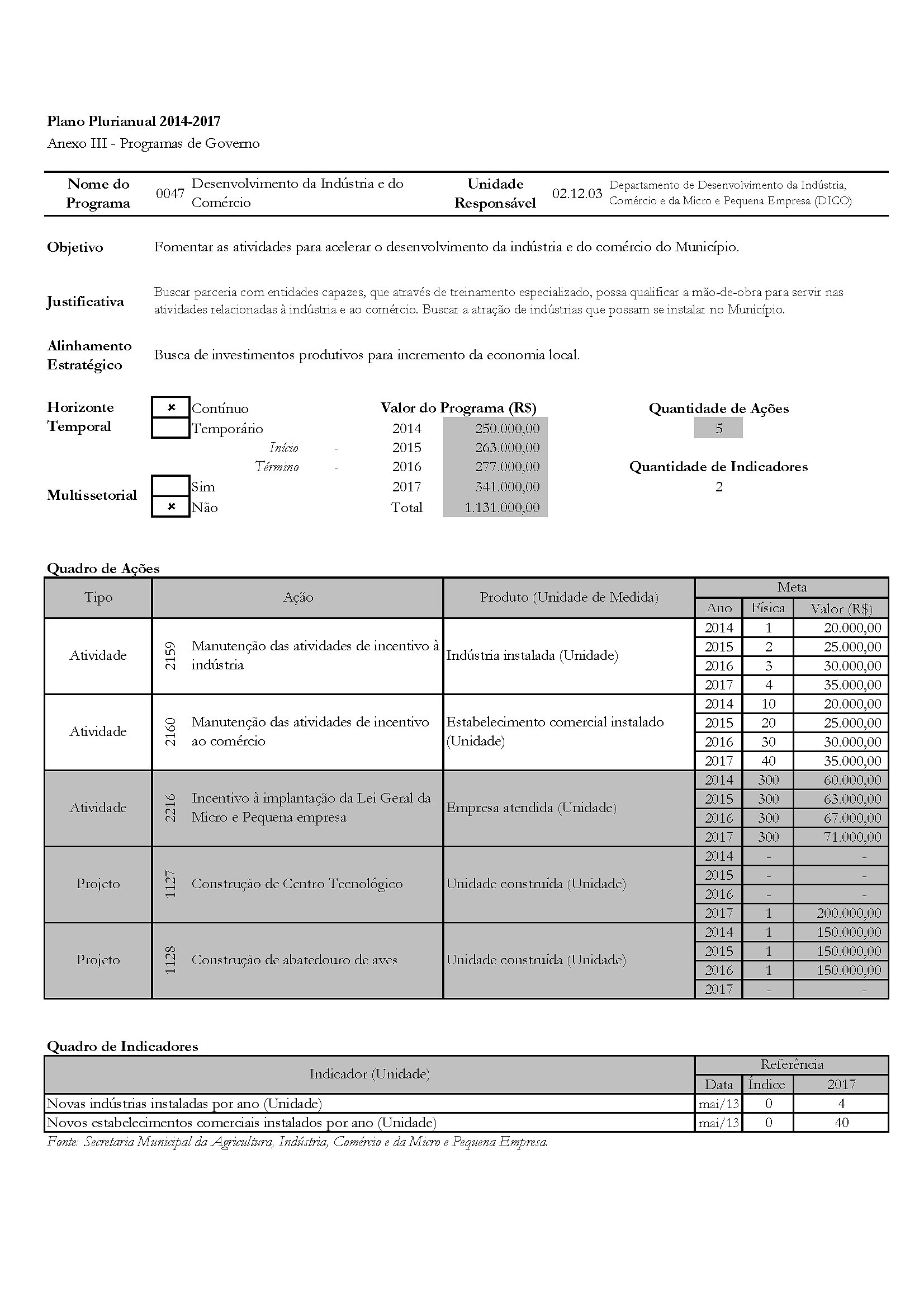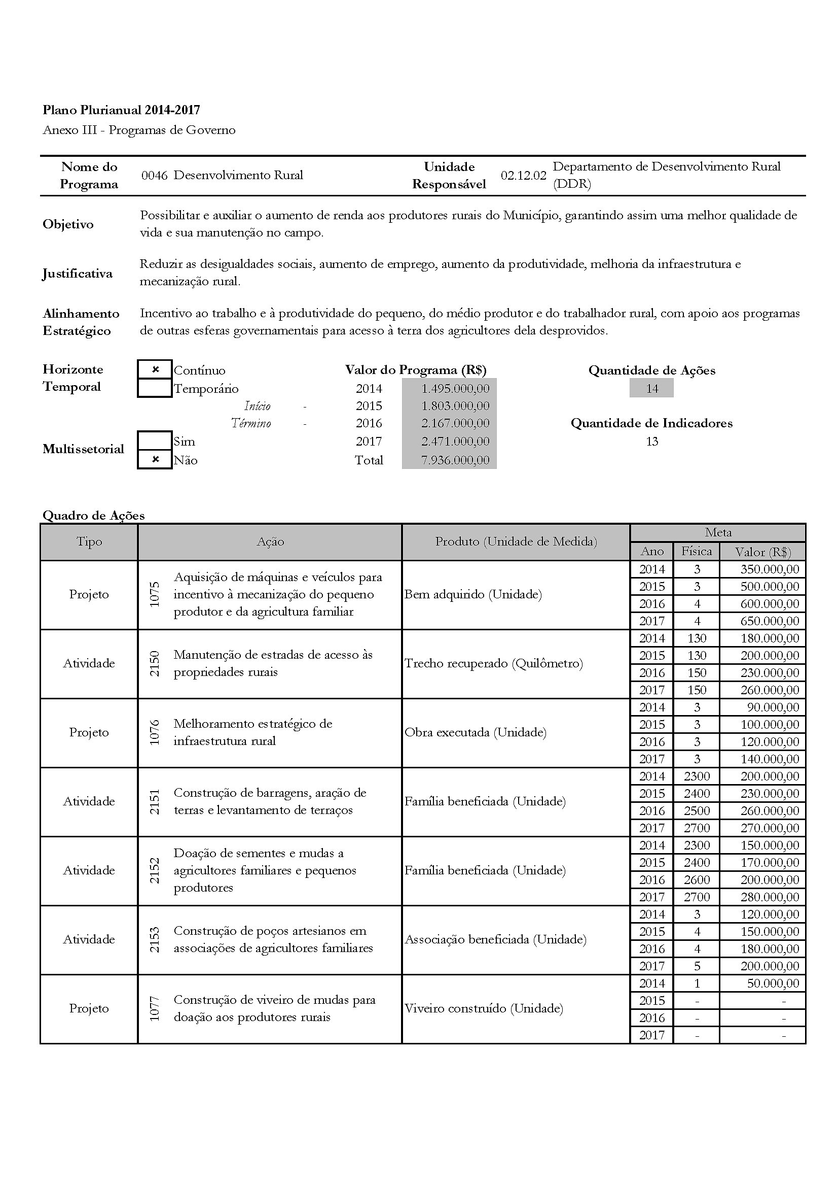 O Plano Plurianual para o quadriênio 2014-2017, em cumprimento ao disposto no artigo 165, § 1º da Constituição Federal e no artigo 157 da Lei Orgânica do Município, reger-se-á por esta Lei, estabelecendo, para o período, os programas com seus respectivos objetivos, indicadores e custos da Administração Municipal, para as despesas de capital e outras delas decorrentes e para as relativas aos programas de duração continuada.