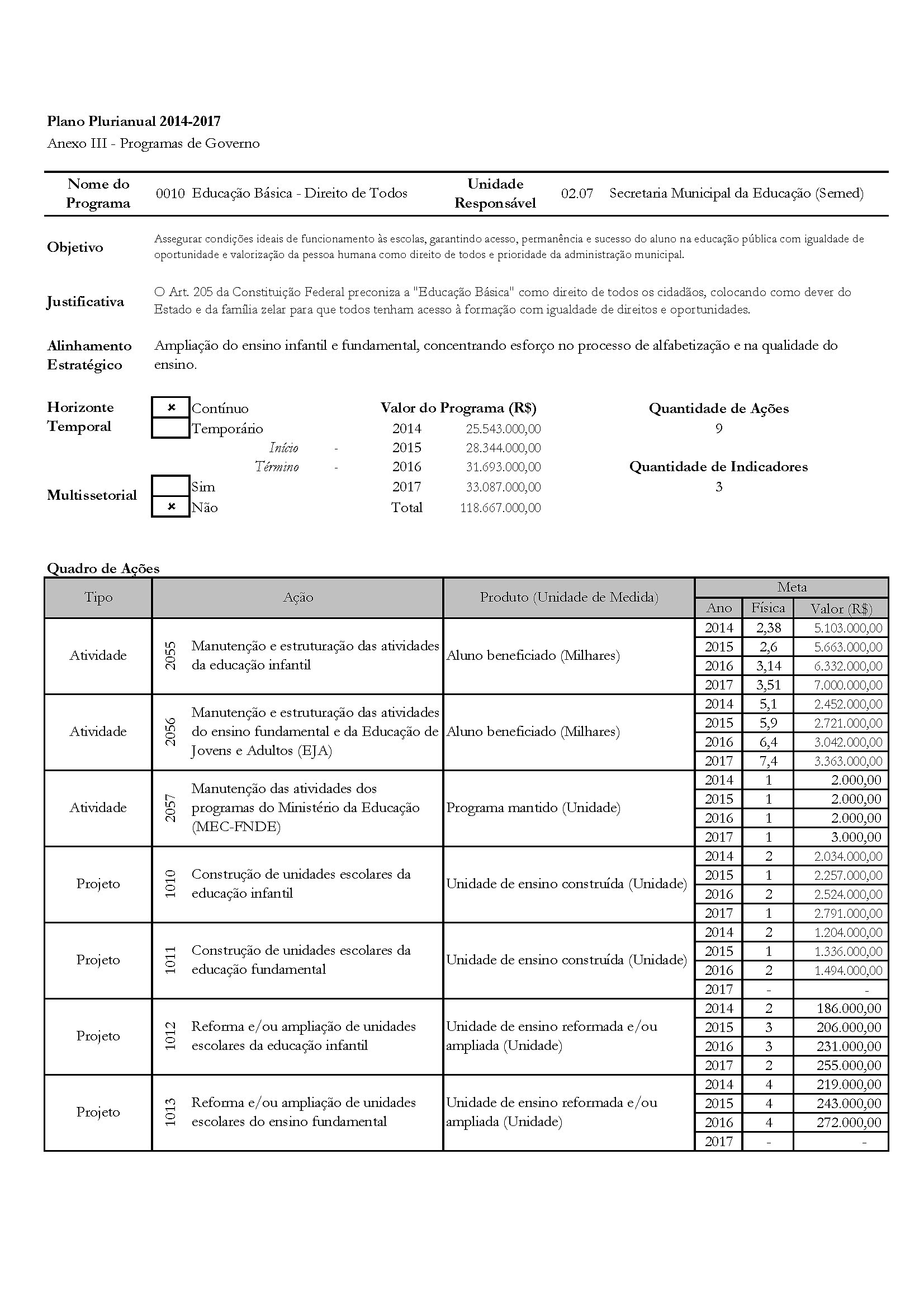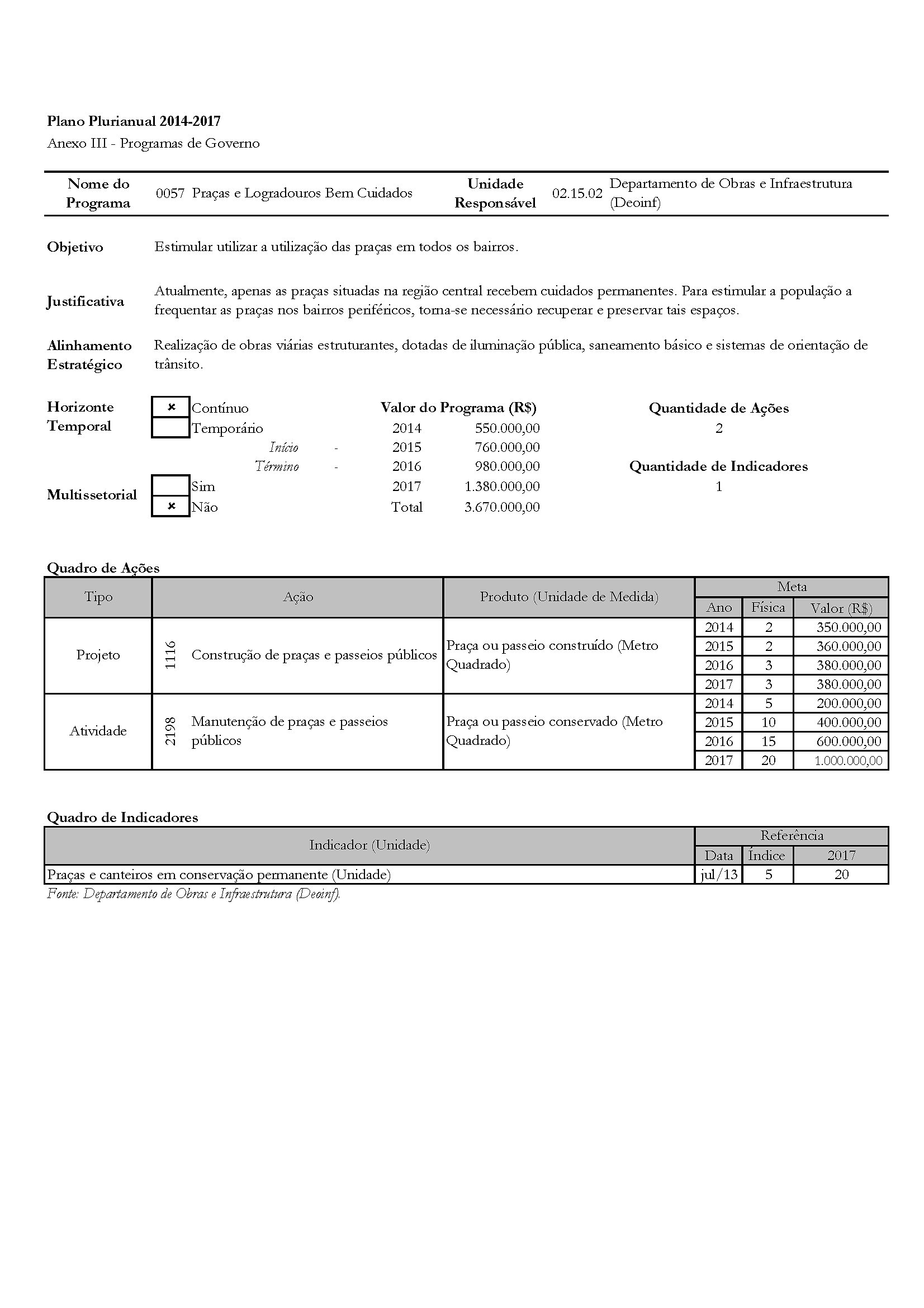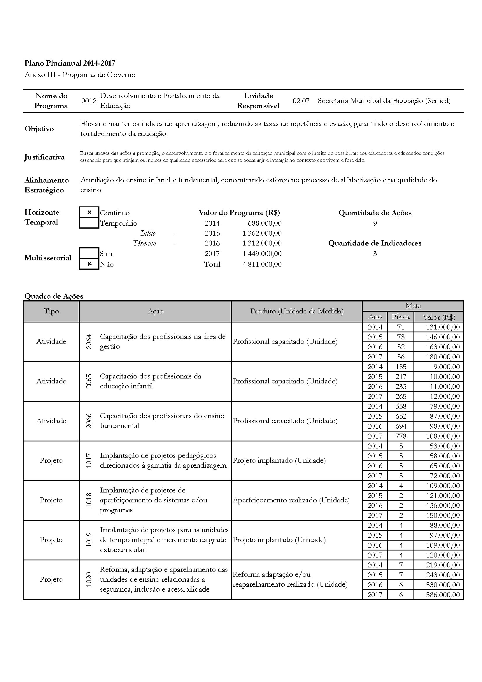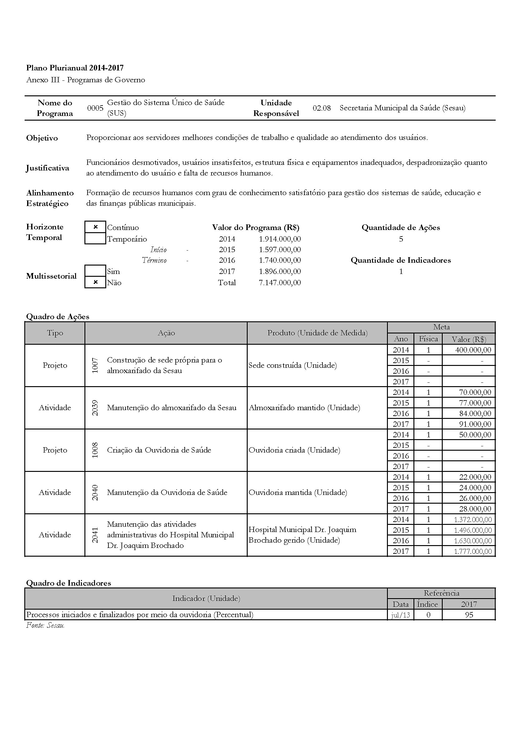 O Plano Plurianual para o quadriênio 2014-2017, em cumprimento ao disposto no artigo 165, § 1º da Constituição Federal e no artigo 157 da Lei Orgânica do Município, reger-se-á por esta Lei, estabelecendo, para o período, os programas com seus respectivos objetivos, indicadores e custos da Administração Municipal, para as despesas de capital e outras delas decorrentes e para as relativas aos programas de duração continuada.