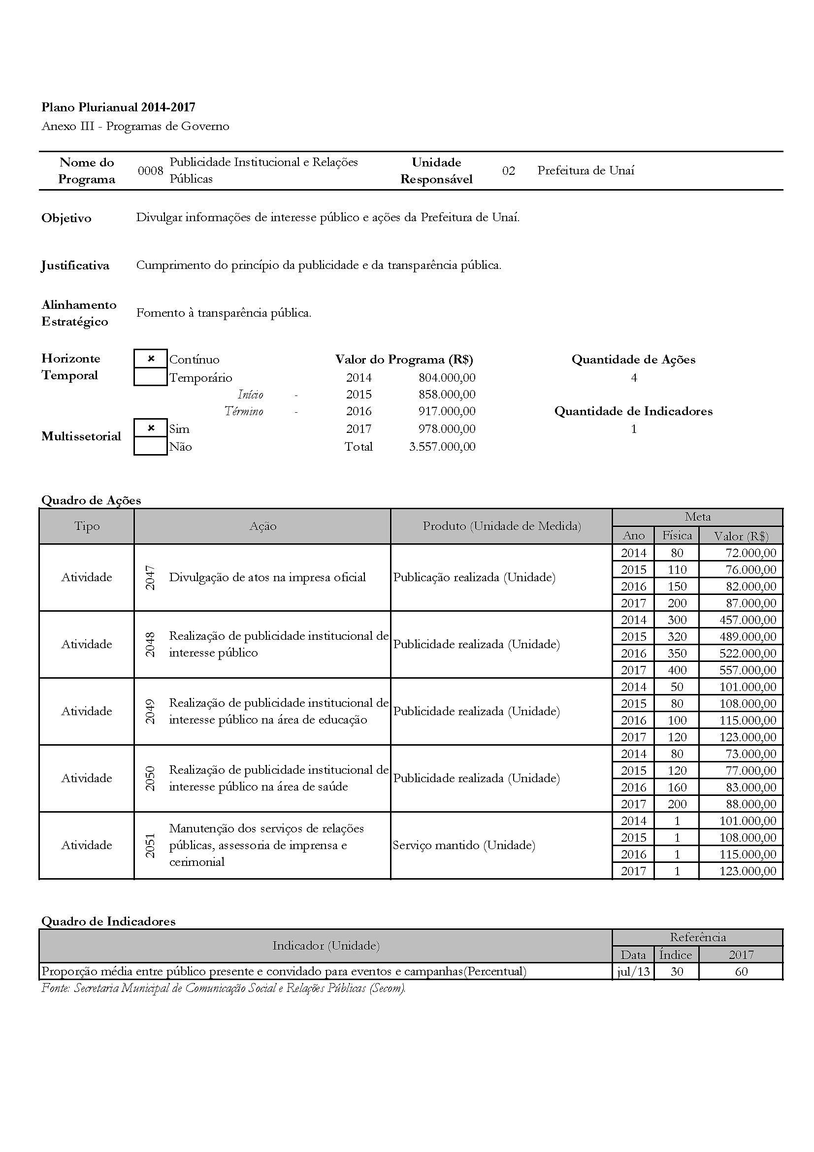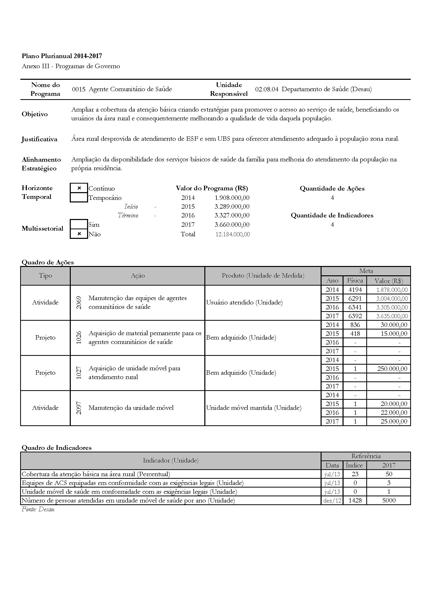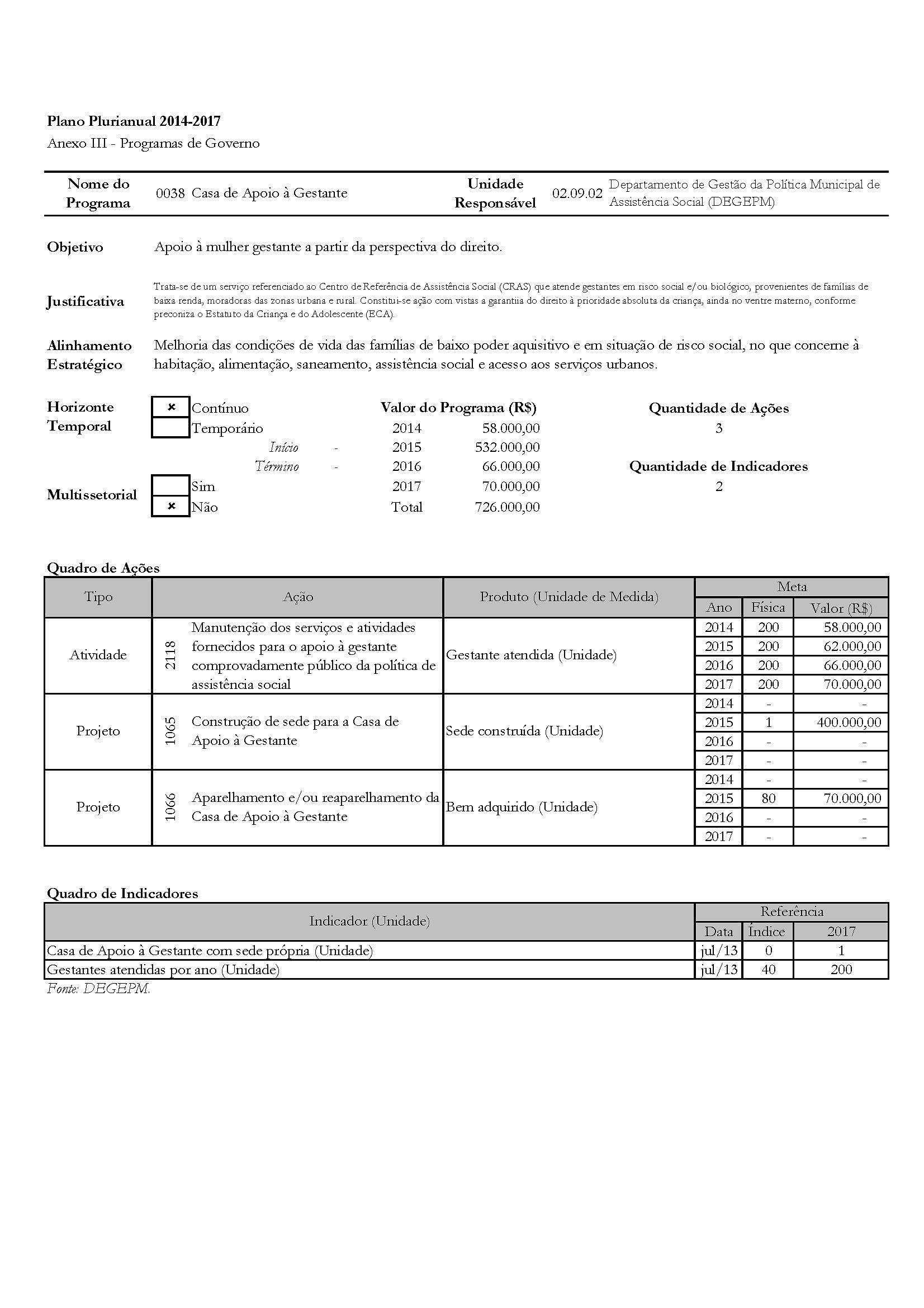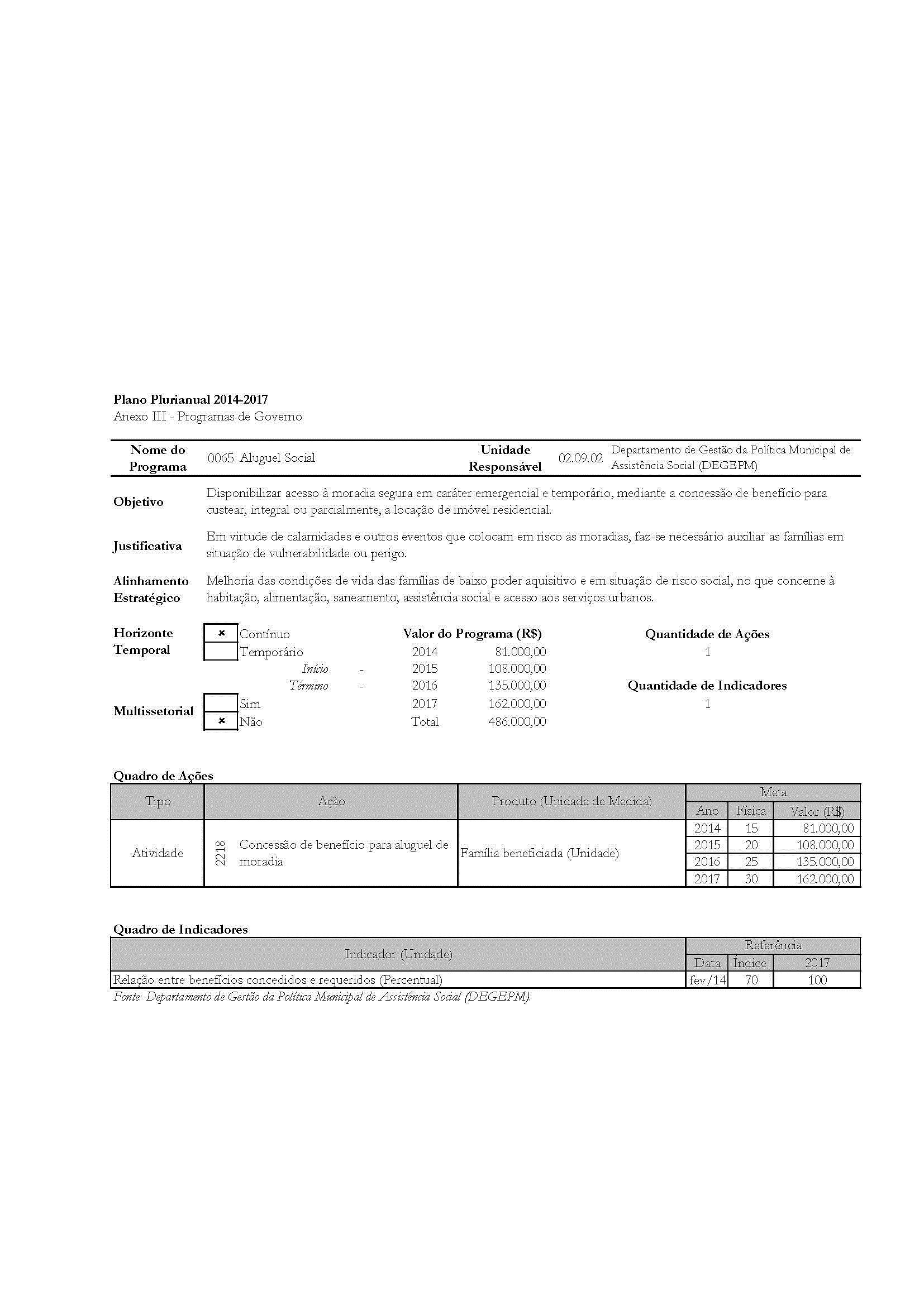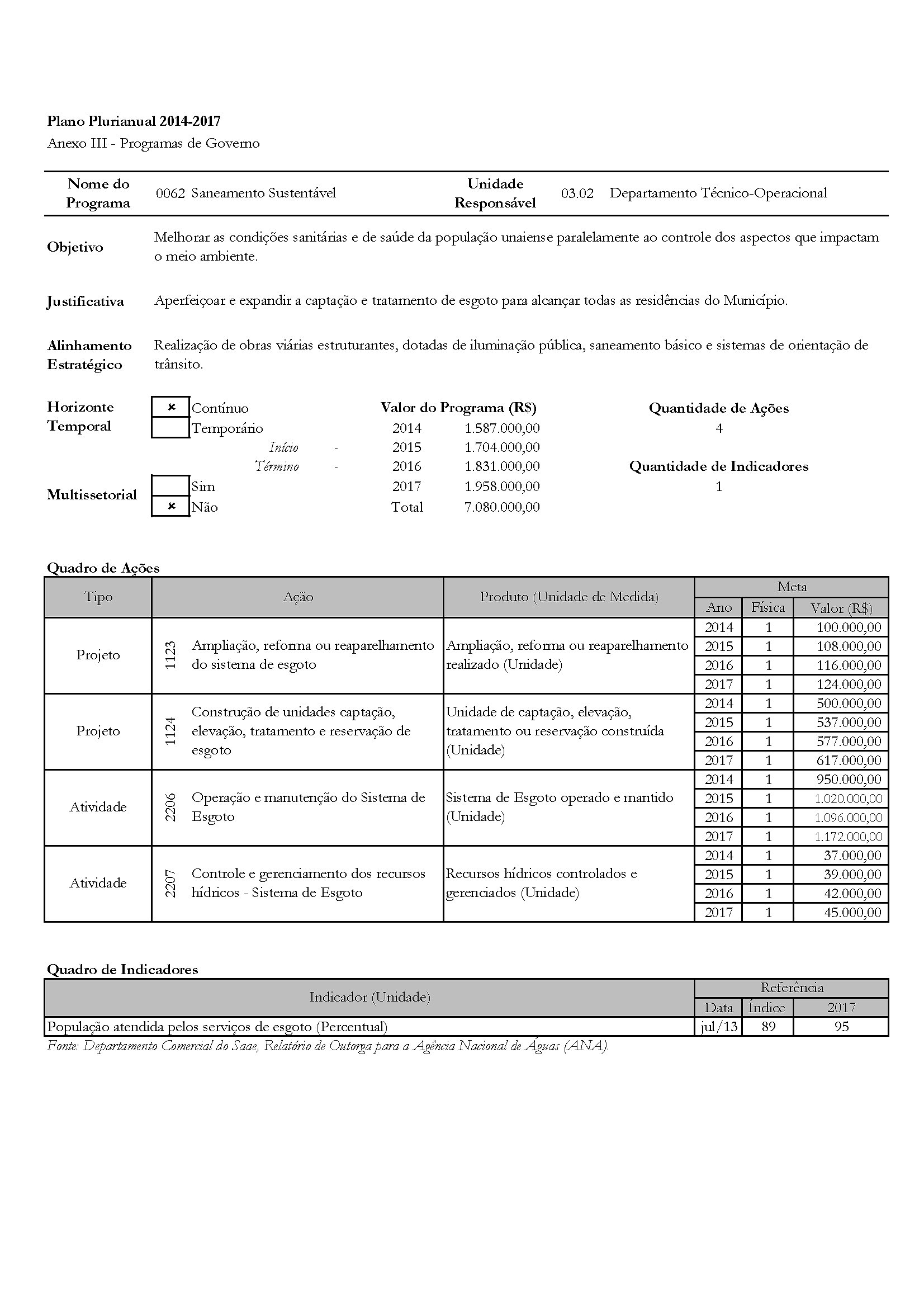 O Plano Plurianual para o quadriênio 2014-2017, em cumprimento ao disposto no artigo 165, § 1º da Constituição Federal e no artigo 157 da Lei Orgânica do Município, reger-se-á por esta Lei, estabelecendo, para o período, os programas com seus respectivos objetivos, indicadores e custos da Administração Municipal, para as despesas de capital e outras delas decorrentes e para as relativas aos programas de duração continuada.