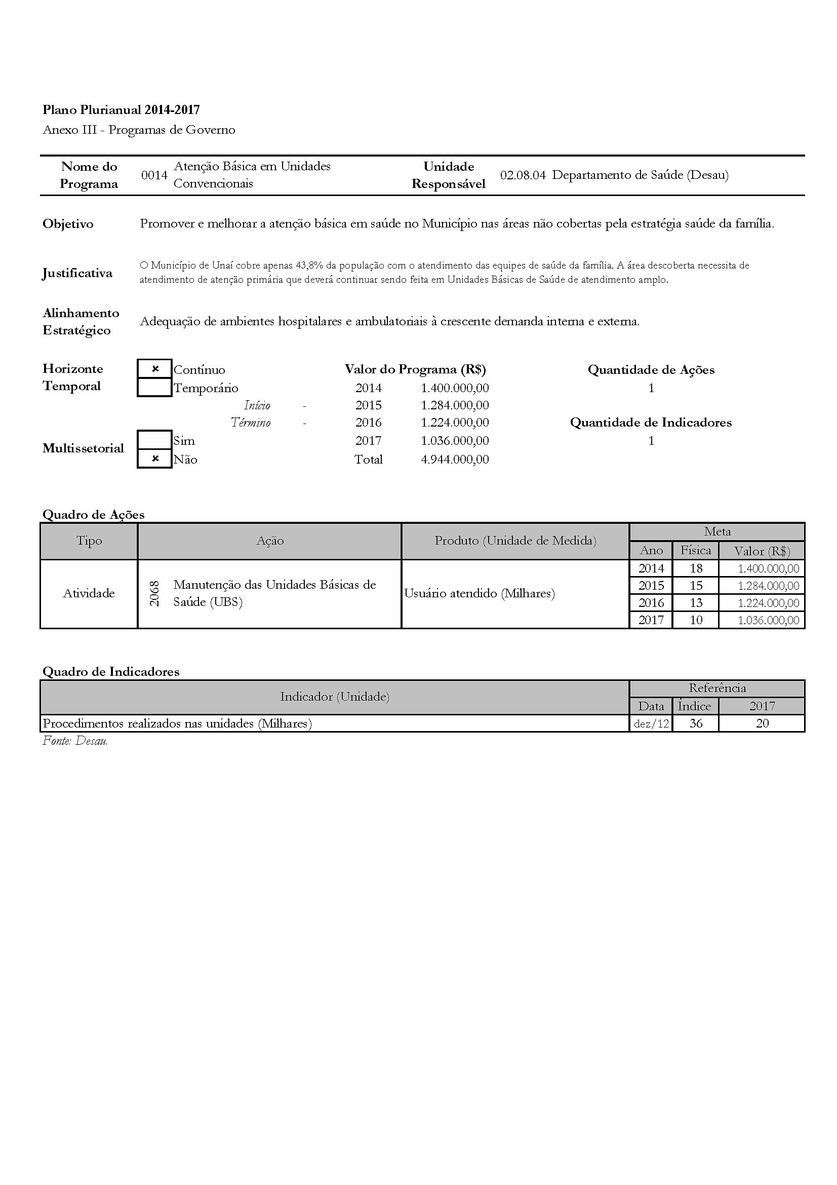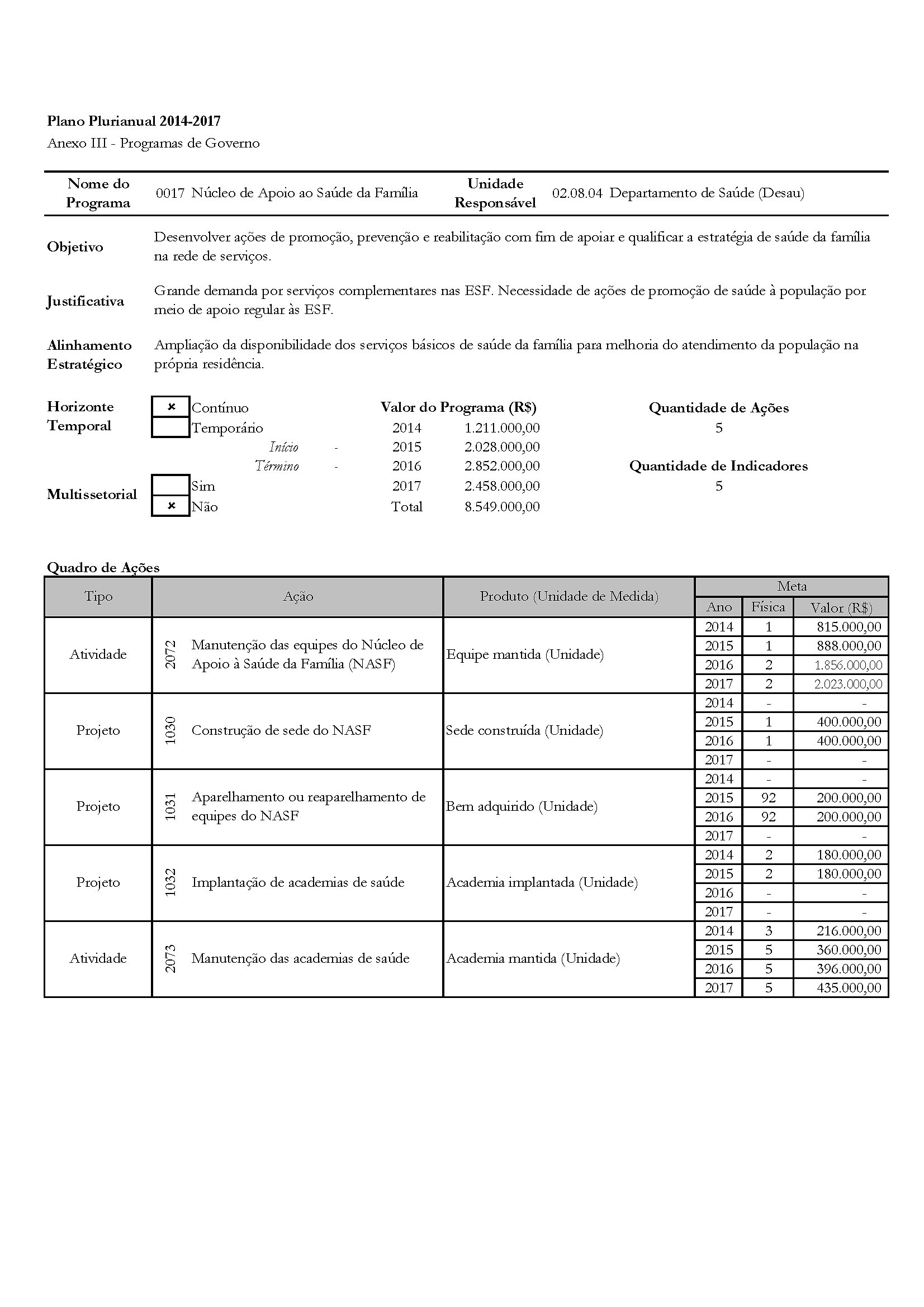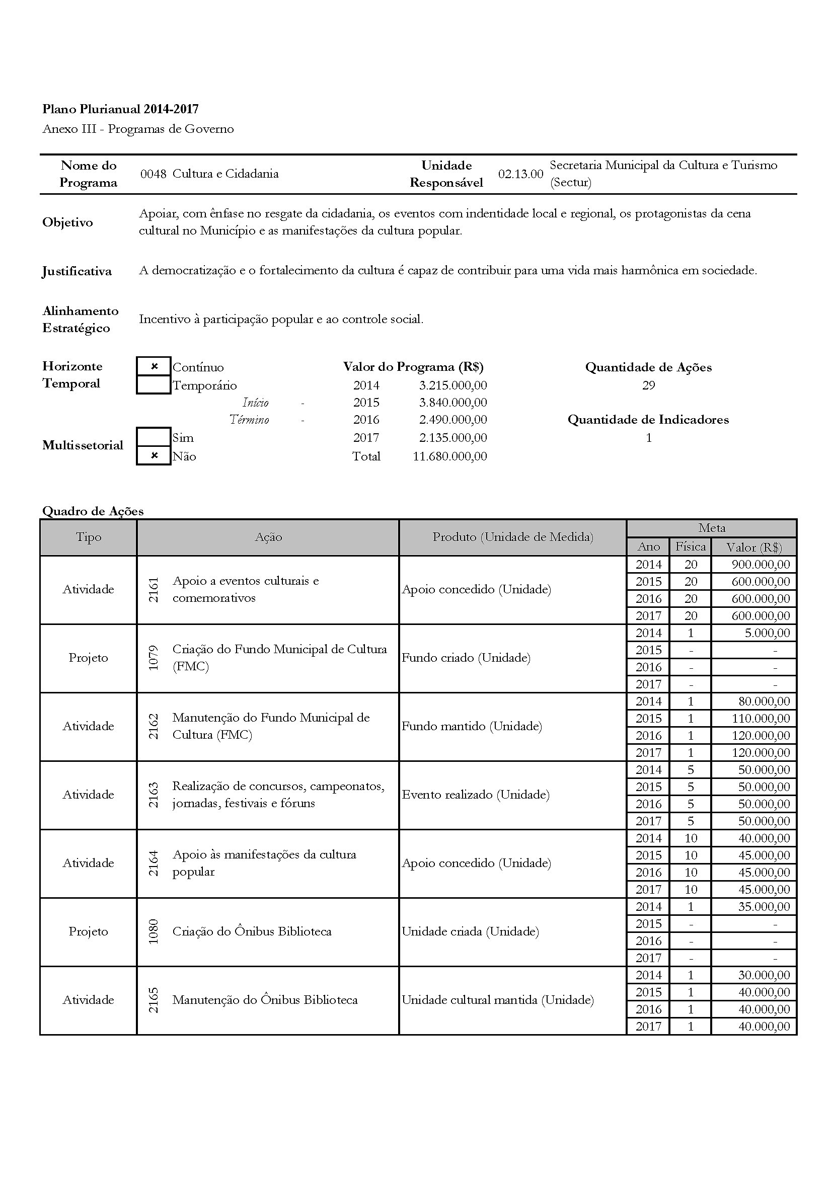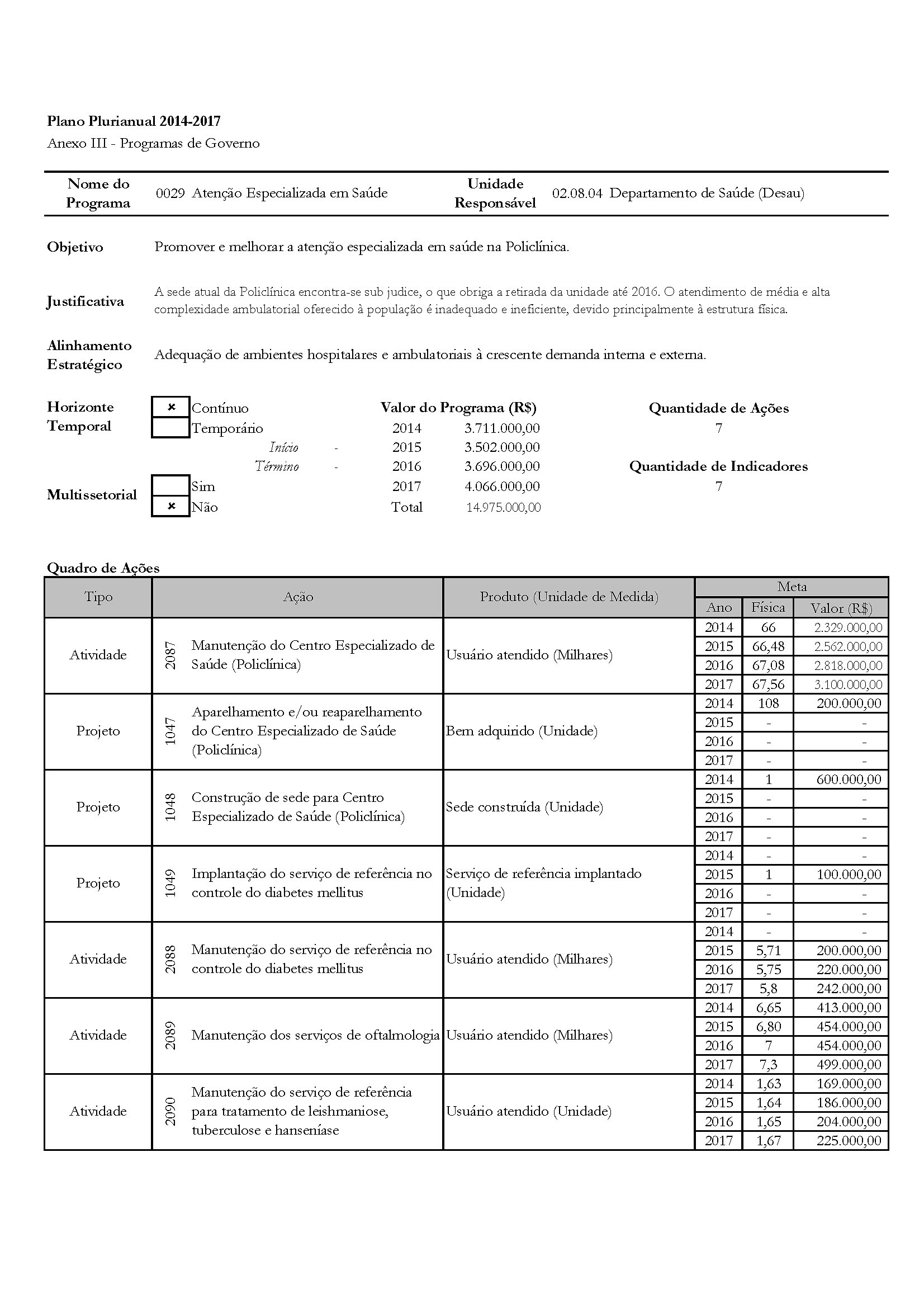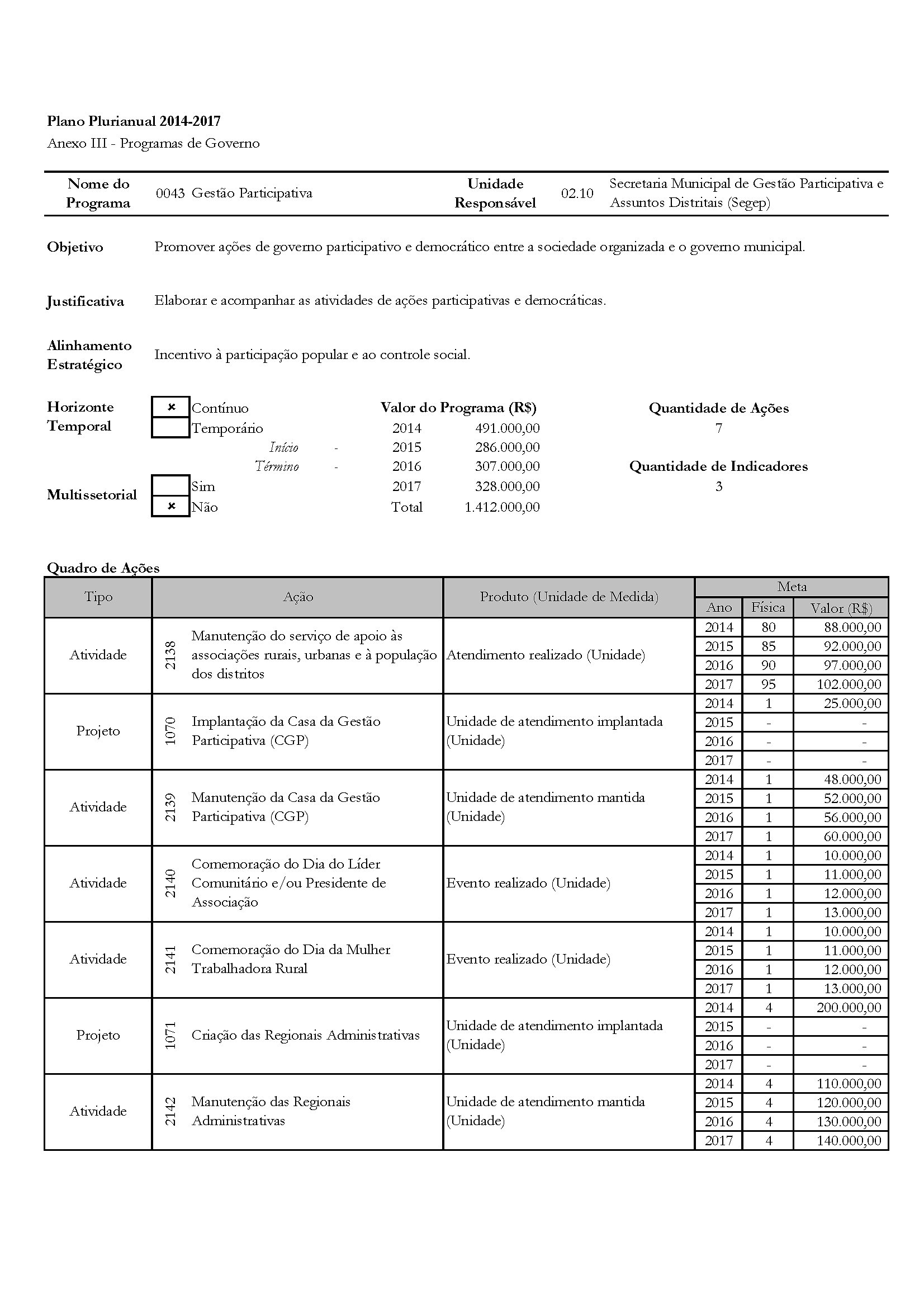 O Plano Plurianual para o quadriênio 2014-2017, em cumprimento ao disposto no artigo 165, § 1º da Constituição Federal e no artigo 157 da Lei Orgânica do Município, reger-se-á por esta Lei, estabelecendo, para o período, os programas com seus respectivos objetivos, indicadores e custos da Administração Municipal, para as despesas de capital e outras delas decorrentes e para as relativas aos programas de duração continuada.