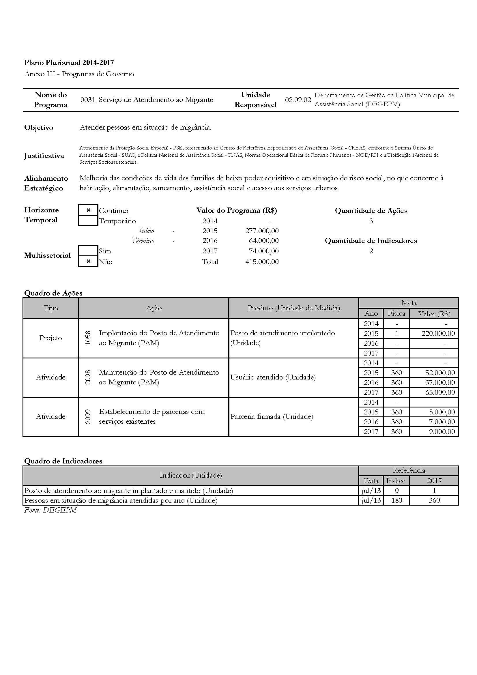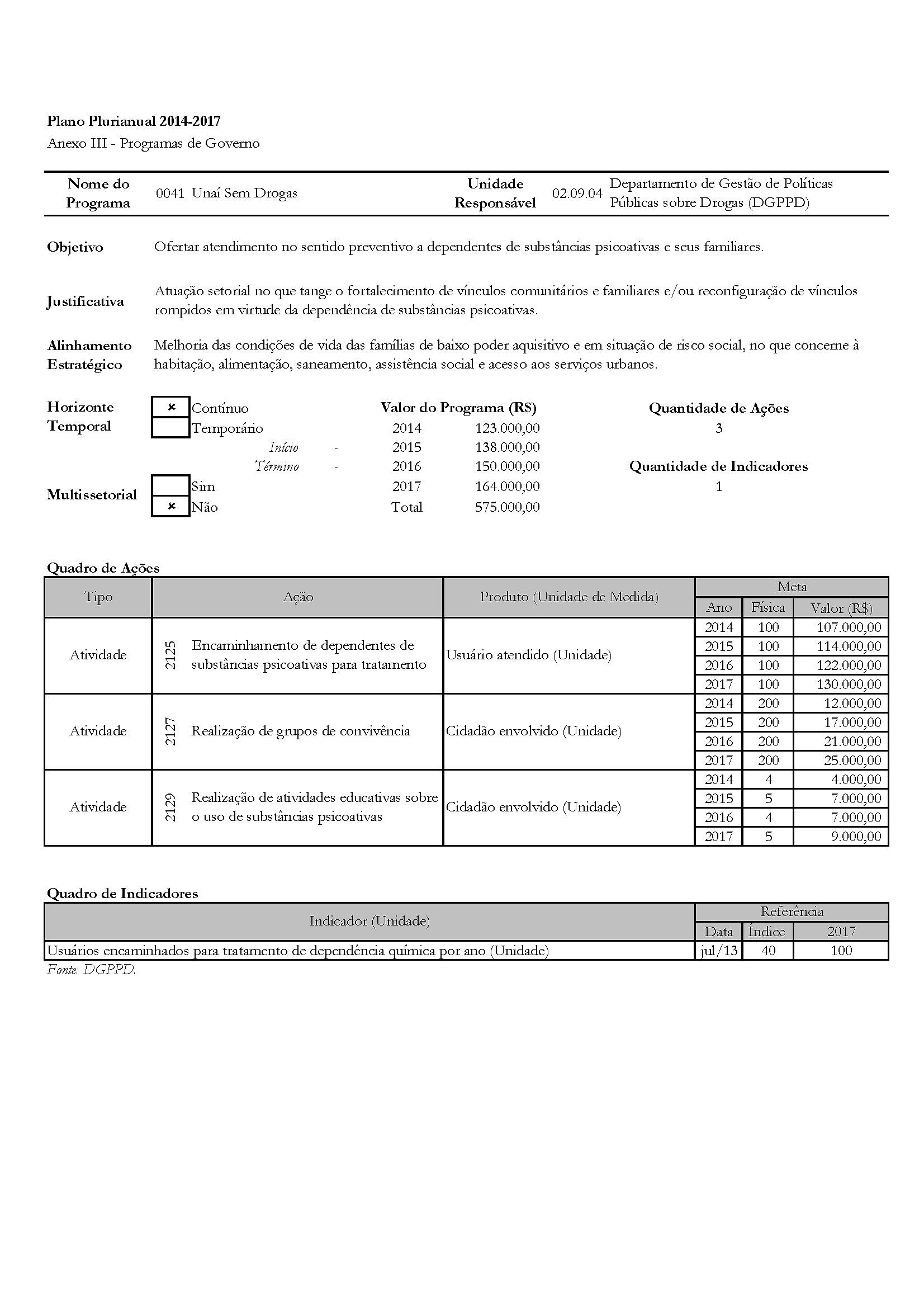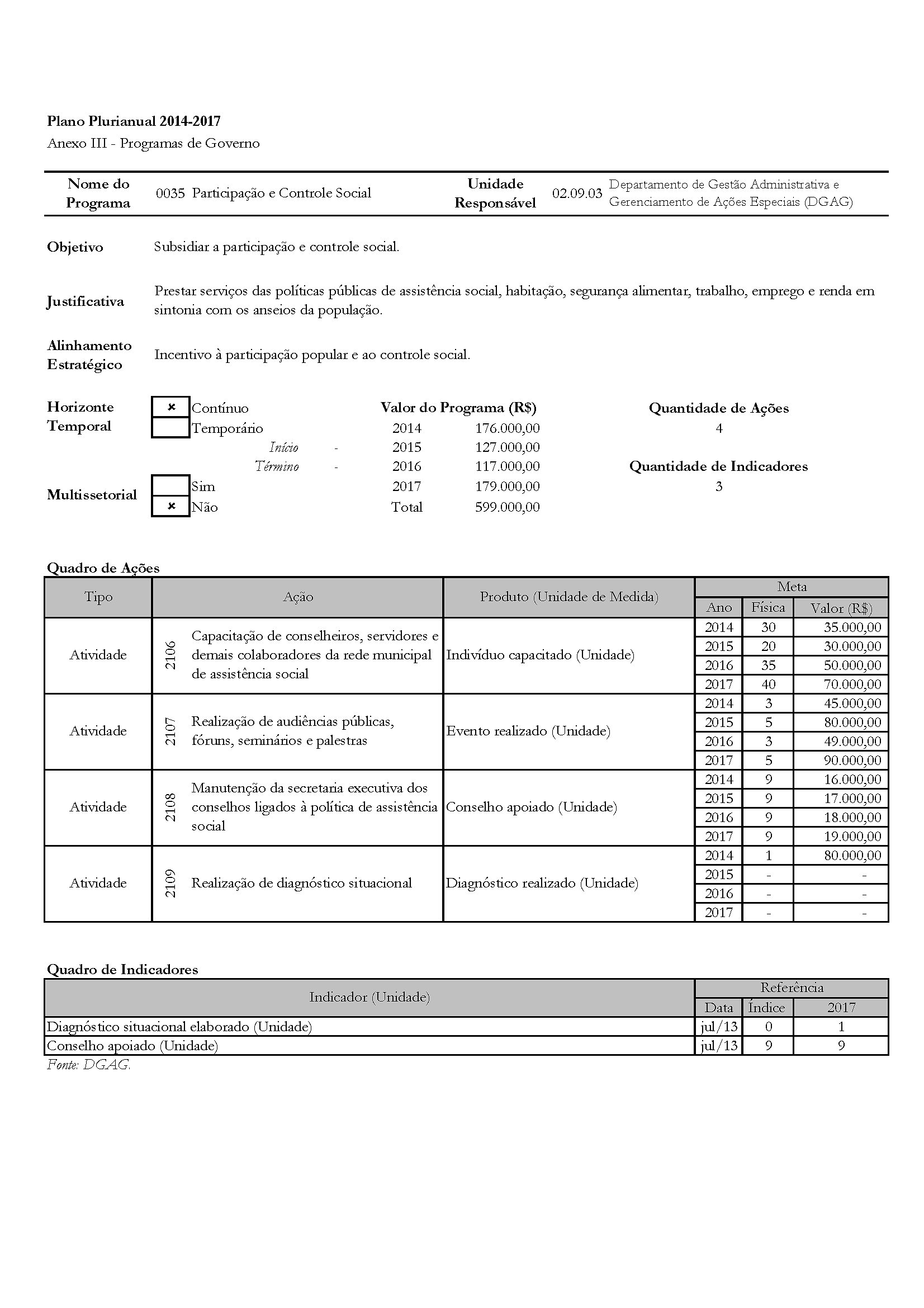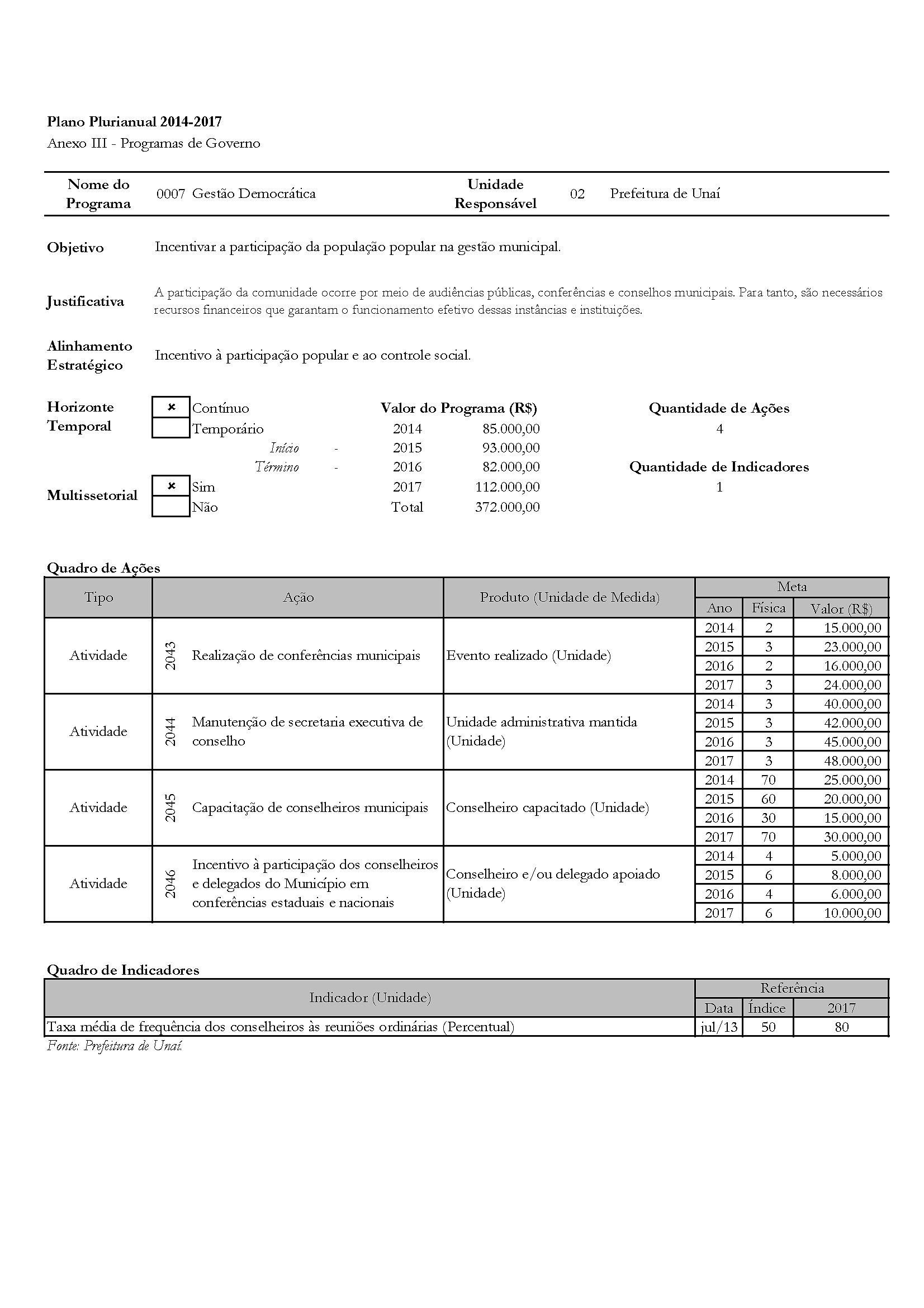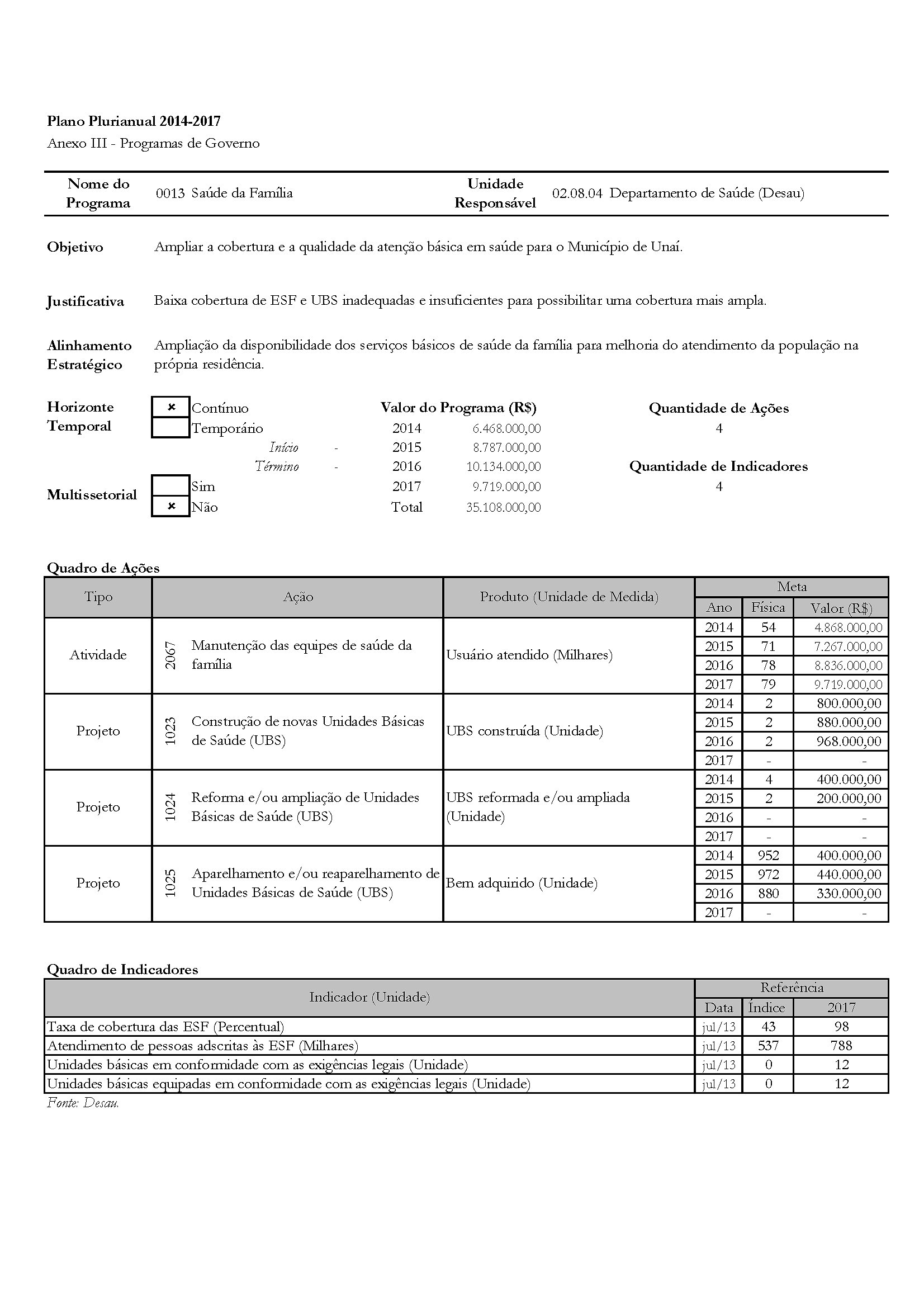O Plano Plurianual para o quadriênio 2014-2017, em cumprimento ao disposto no artigo 165, § 1º da Constituição Federal e no artigo 157 da Lei Orgânica do Município, reger-se-á por esta Lei, estabelecendo, para o período, os programas com seus respectivos objetivos, indicadores e custos da Administração Municipal, para as despesas de capital e outras delas decorrentes e para as relativas aos programas de duração continuada.
